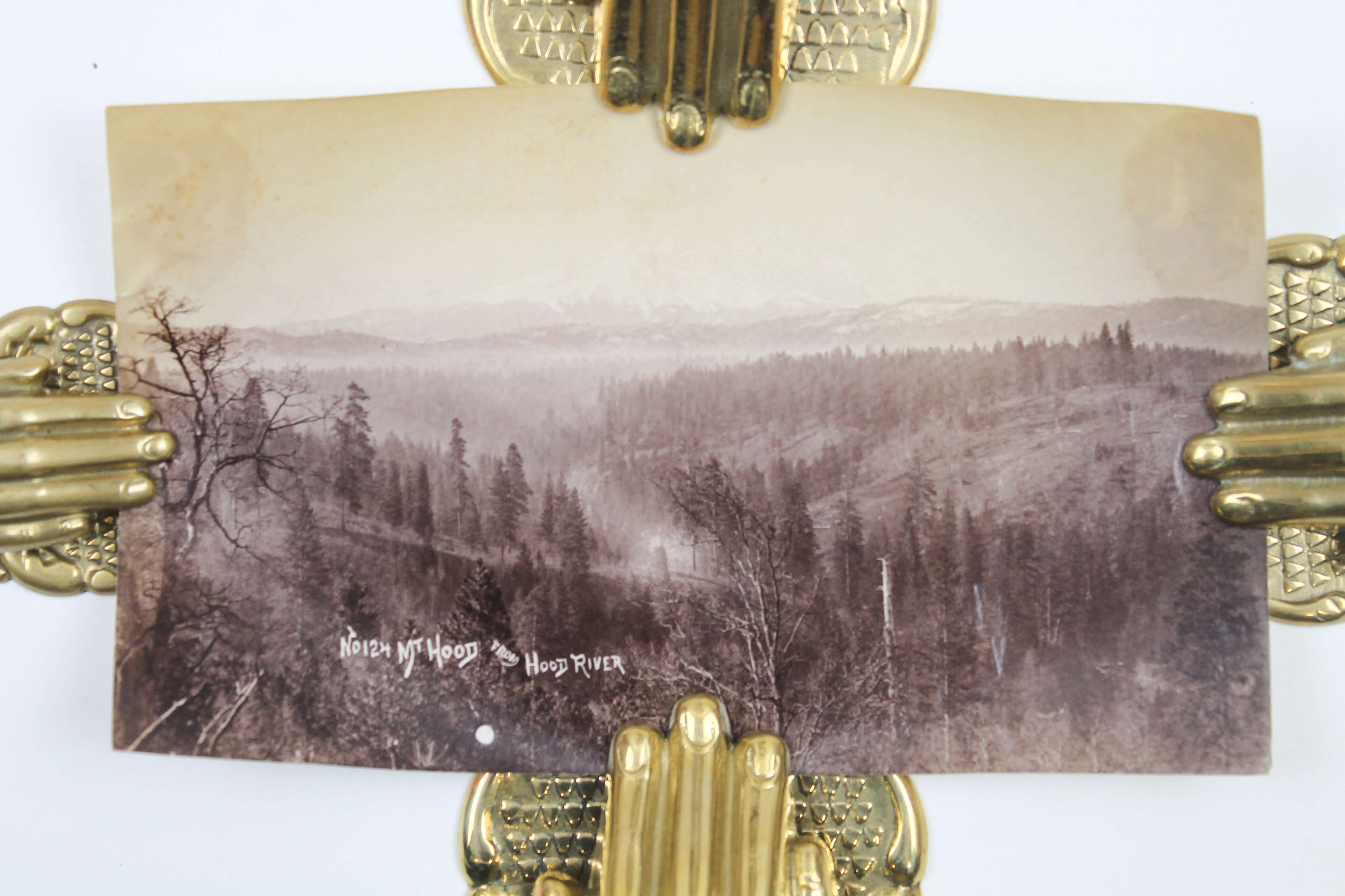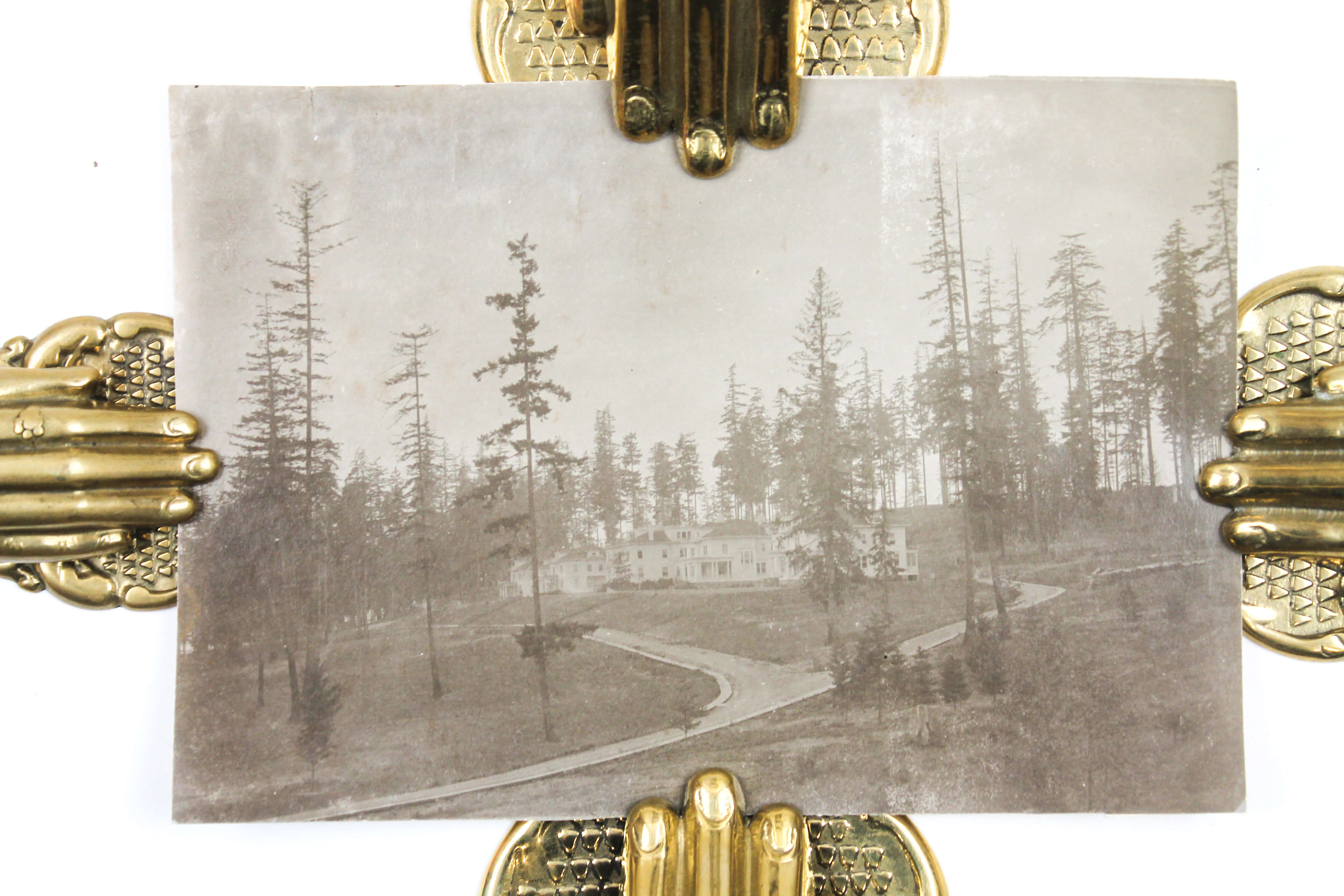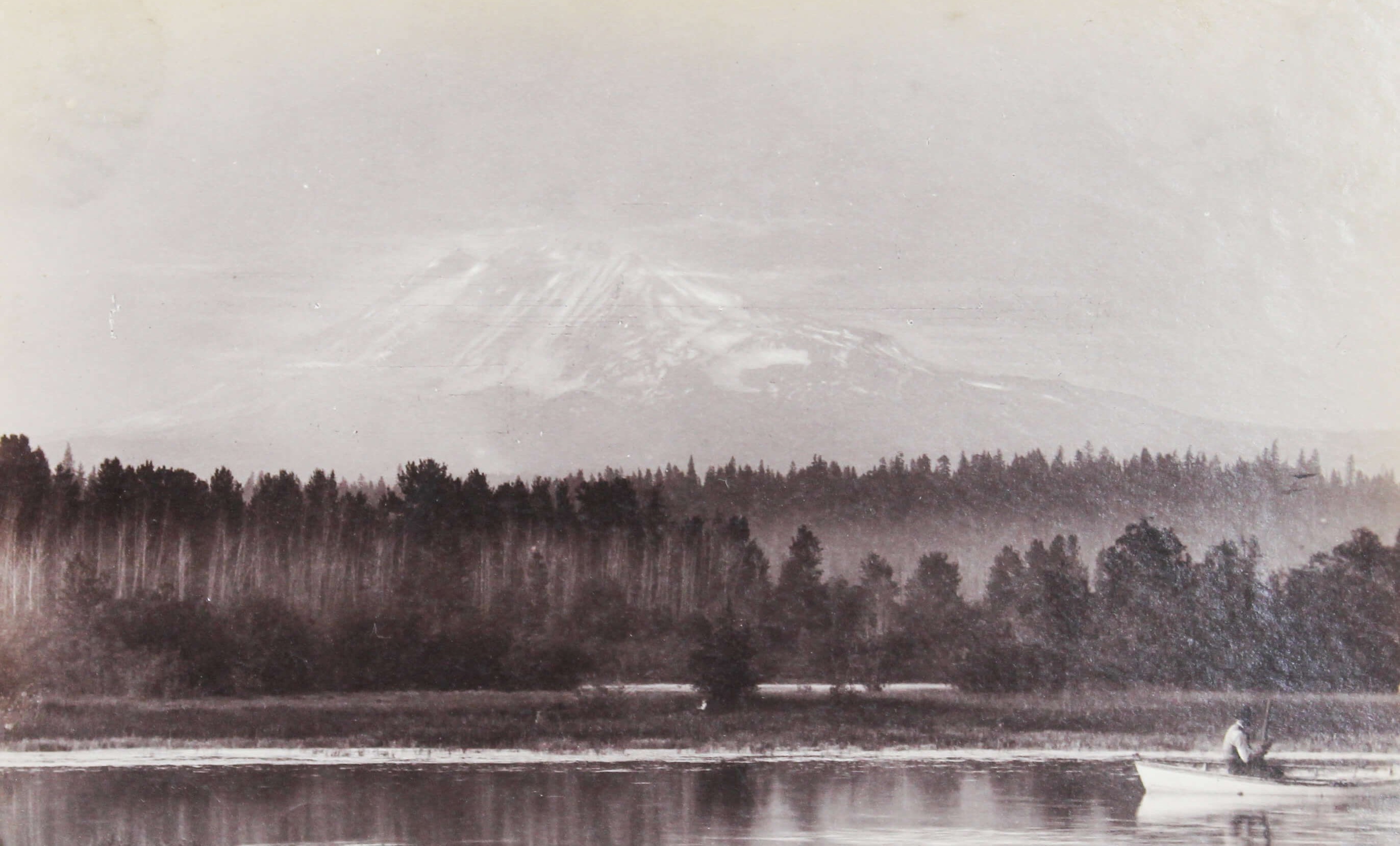 The collection comprises fifteen excellent original gelatin silver photographs apparently taken by an American traveler and his companion (captured from the back in several photos) in the late 1890s. Especially interesting is a well-executed photo of the U.S.S. Nipsic gunboat docked at the Puget Sound Naval Shipyard. The Nipsic arrived at the yard in 1892 and, at the time the photograph was taken, was serving as both a receiving ship and a prison hulk. The image shows the gunboat with a large roof built over the amidships section, used to accommodate personnel and prisoners. Another important photo from the Naval Shipyard shows officer’s quarters, constructed to provide adequate housing for the officers responsible for the shipyard and industrial area. The images depict early grounds of the quarters with several similar buildings erected side by side. The other photographs from the collection feature excellent views of the Columbia River Gorge and its environs, showing Latourelle Falls, Rooster Rock, Beacon Rock, Oneonta Gorge, and Mount Hood.
