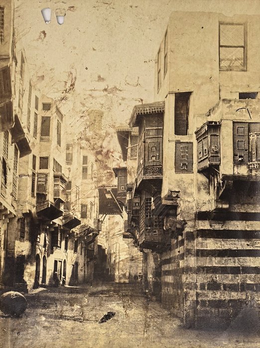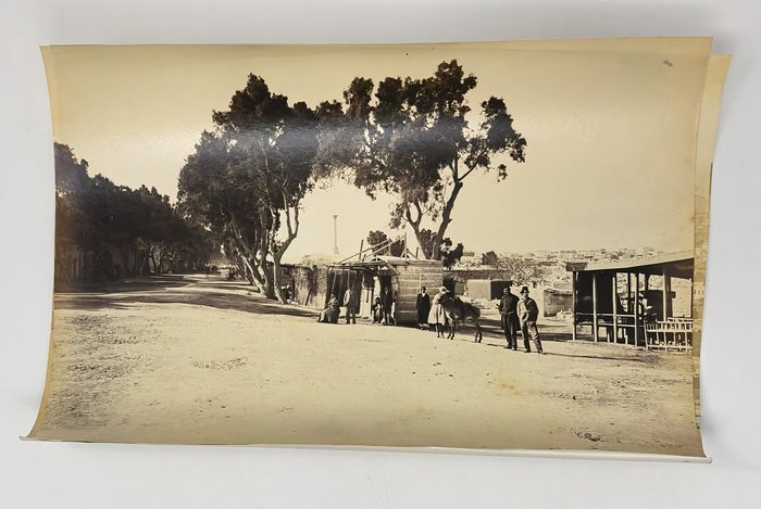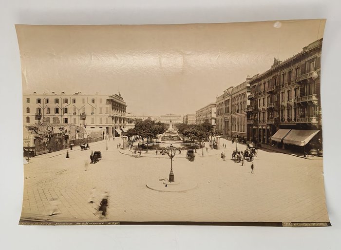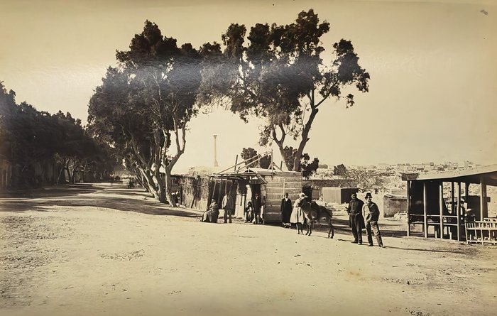 Over a dozen views of Alexandria (mostly, by Luigi Fiorillo) show the city’s harbour and port, general views, Pompey’s Pillar, Cleopatra’s Needle (moved to New York and installed in Central Park in 1881), the Hippodrome, abandoned palace of Said Pasha in the El Max neighbourhood, Muhammad Ali Square, Mahmudiyya Canal, and Ras El-Tin Palace. An early interesting photo depicts a street in Alexandria with trees on both sides and Pompey’s Pillar in the background.
