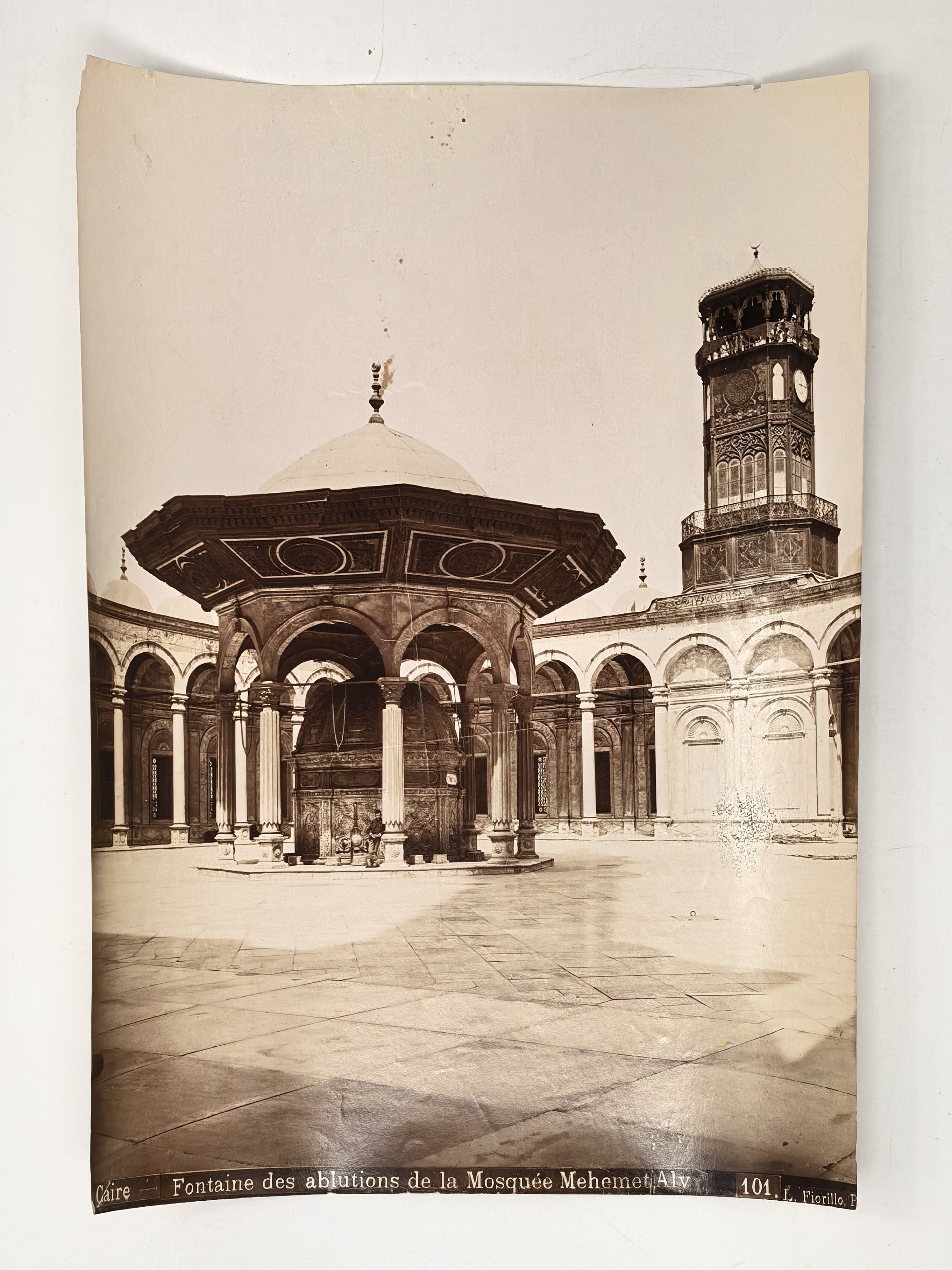 Six smallest photos, evidently made to be sold as cartes-de-visite (but not yet mounted on card, which is a rare example), show the Pyramids of Giza, the Great Pyramid, Cairo Citadel and Muhammad Ali Mosque, dredges working on the excavation of the Suez Canal, and two portraits of Egyptian women with closed faces.