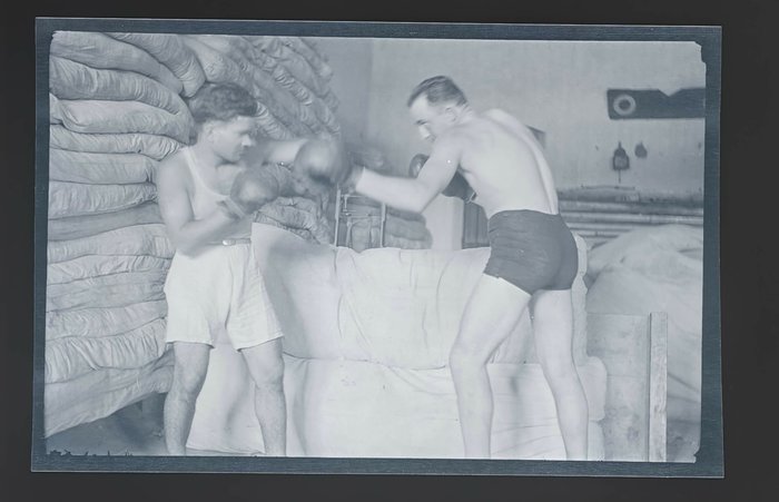 Over forty images document the compiler’s voyage to Madagascar on board the “Messageries Maritimes’” steamer “Azay-le-Rideau” in the spring of 1934, showing Marseille (port and harbour, quarters of “Dépôt des Isolés Coloniaux”), scenes on board the steamer, Port Said and Suez Canal, Dazoudzi (Mayotte archipelago), Zanzibar, Mombasa, &c. The film negatives generally match the photos in both albums, with several additional images not included in the albums.