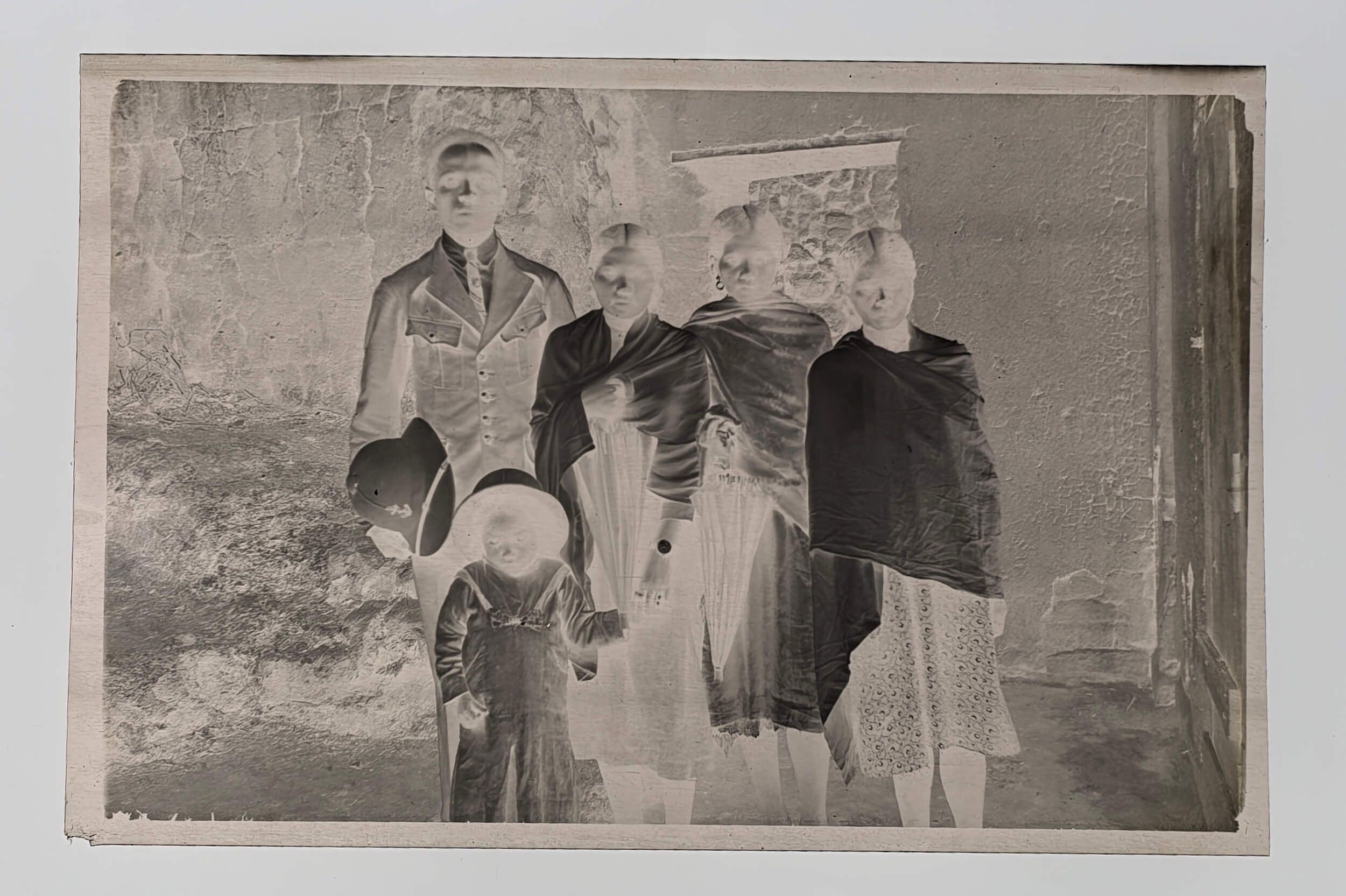 With two period folders ca. 8,5x12,5x3,5 cm (3 ¼ x 4 ¾ x 1 ½ in) and ca. 8x9x3 cm (3 x 3 ½ x 1 ¾ in) with 45 and ca. 95 film negatives ca. 6x9 cm (2 ¼ x 3 ¼ in) and ca. 4x6,5 cm (1 ¾ x 2 ¾ in) respectively. Several negatives faded or blurry, several tissue paper pockets housing negatives with minor tears or losses, but overall very good folders.