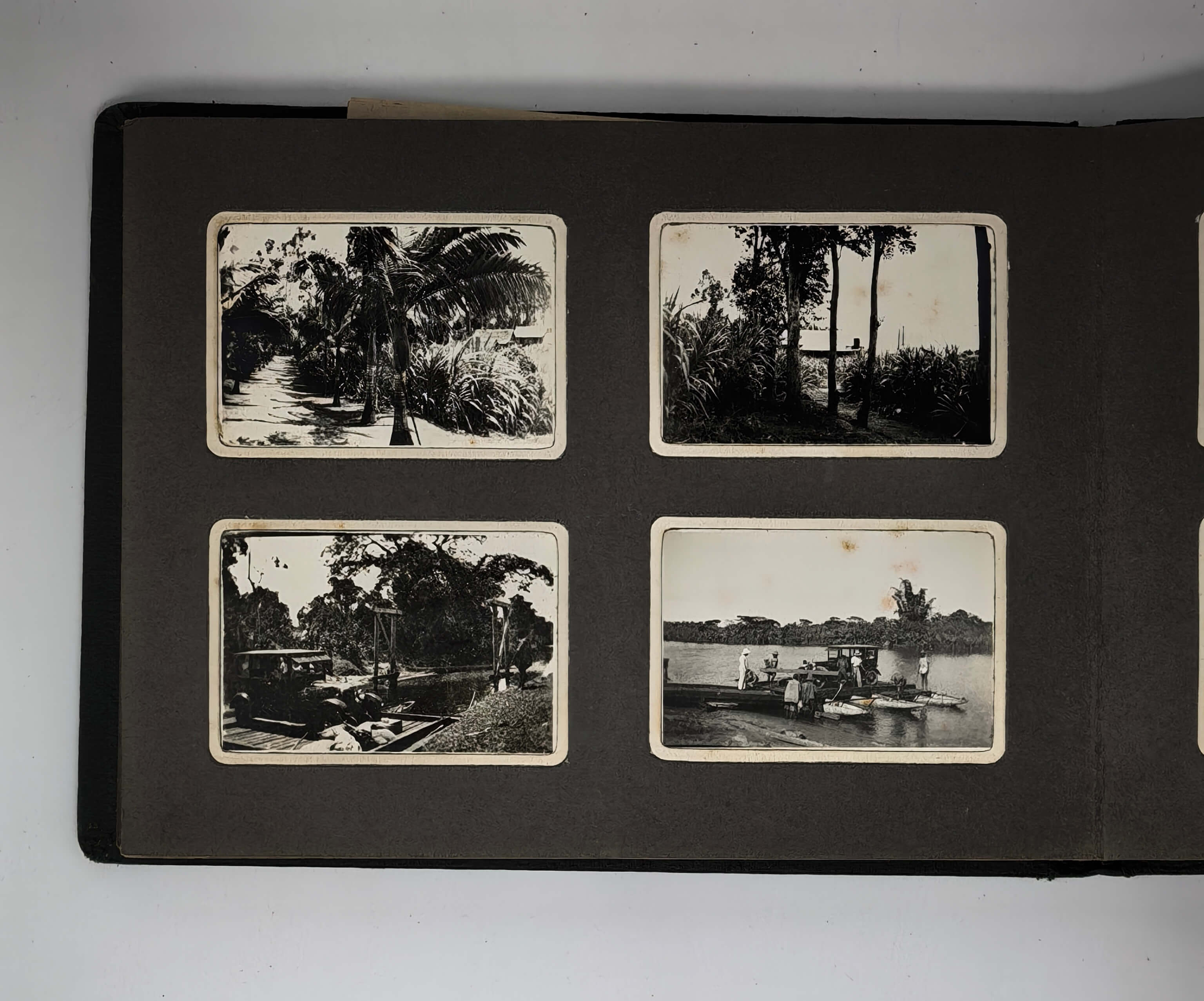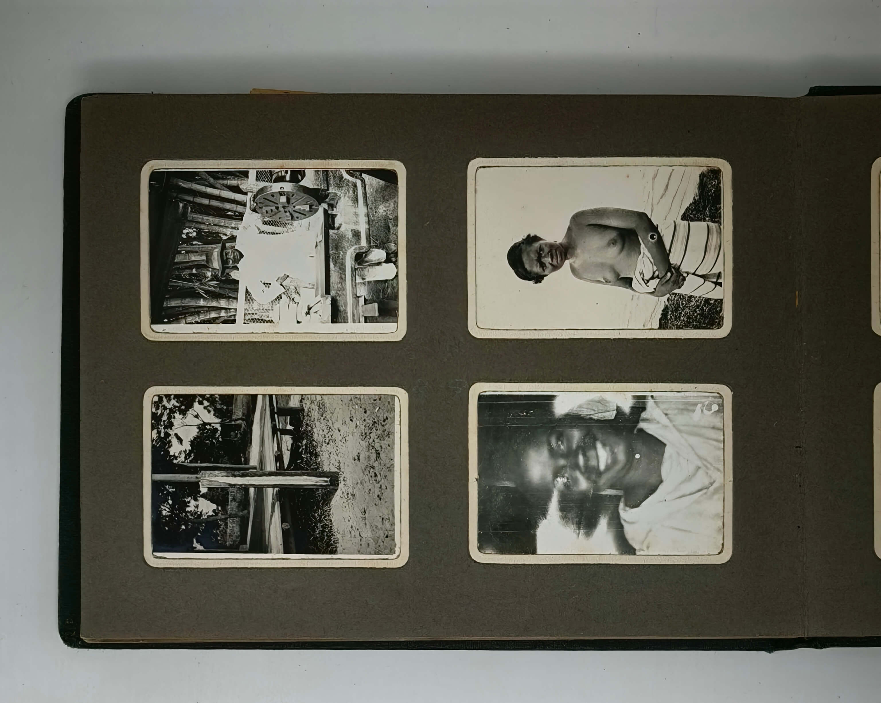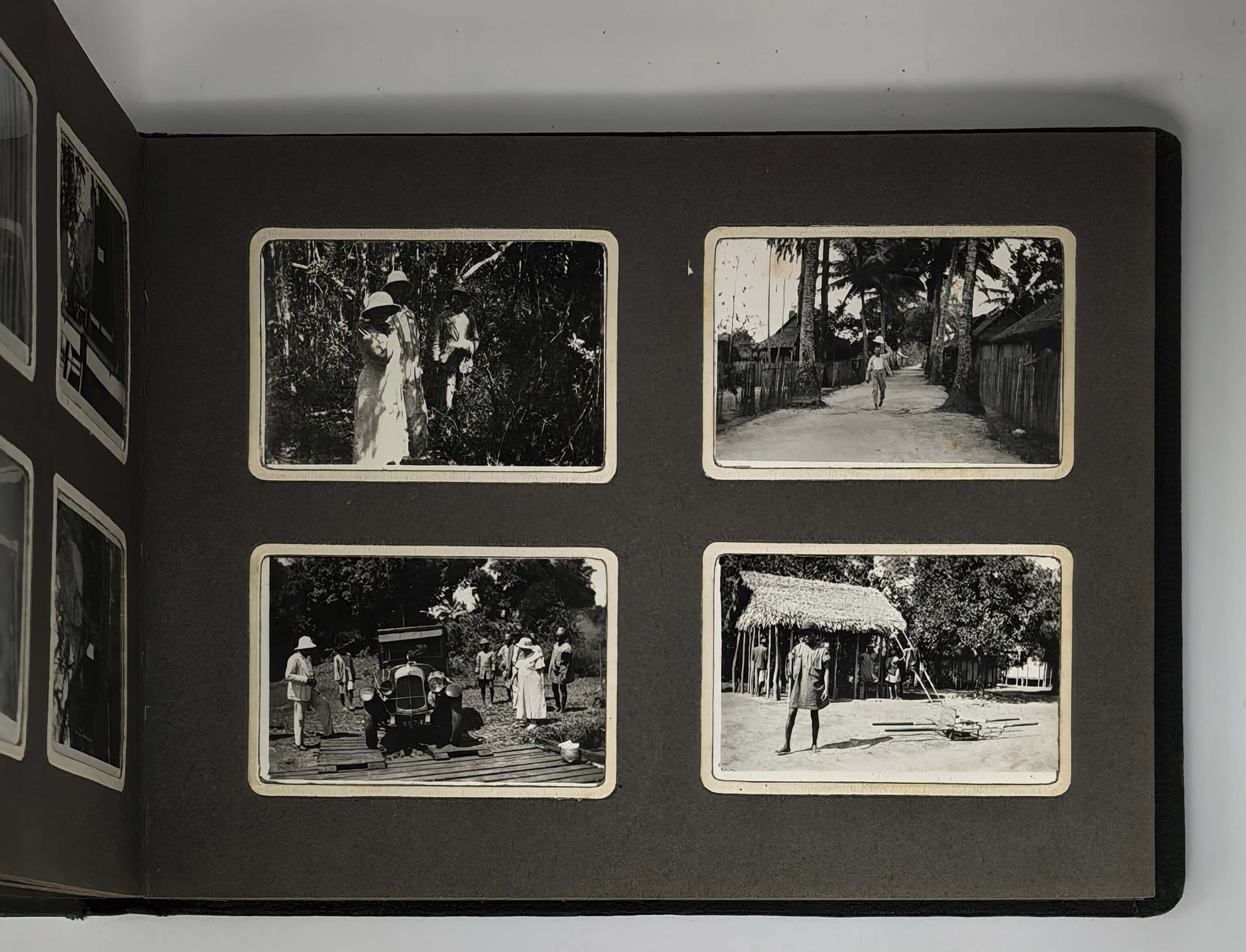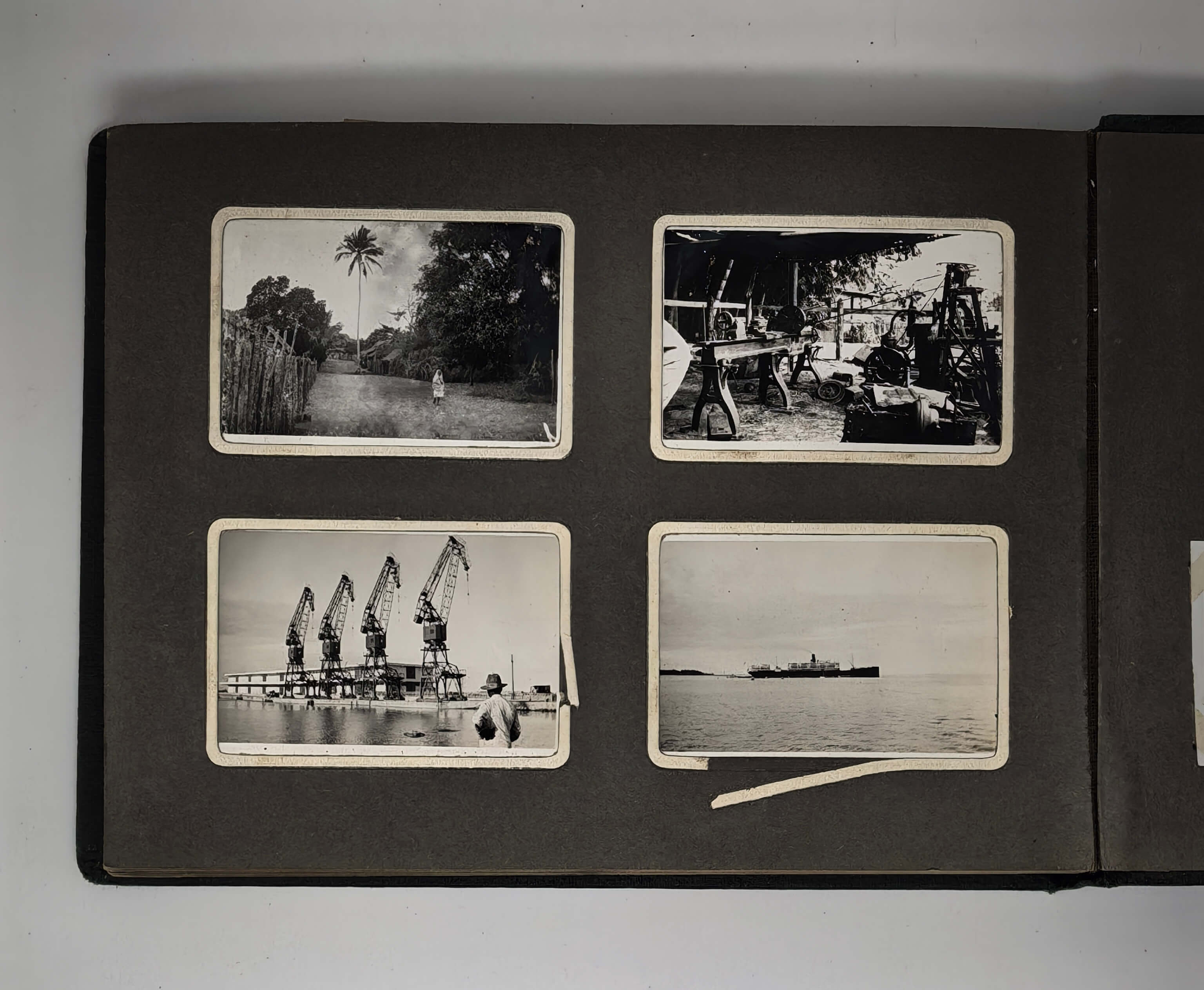 Over fifty images show the port of Tamatave (Toamasina) on Madagascar’s eastern coast and nearby towns of Fenerive (Fenoarivo) and Foulpointe (Mahavelona), where the compiler lived for some time in 1935. The photos include views of “la case de Pierre” in Foulpointe on the ocean shore, the harbour of Fenerive, the port of Tamatave, a sugar cane distillery in Mamandrahana and its owners “Mr. and Madame Leroux (Lina),” Ivondro and Fanifara Rivers, local villages (Fanifara, Ihorama), the environs of “Brickaville”, sugar cane and coffee plantations, a mechanic’s workshop, portraits of “Pierre’s” servants and girlfriends, &c.