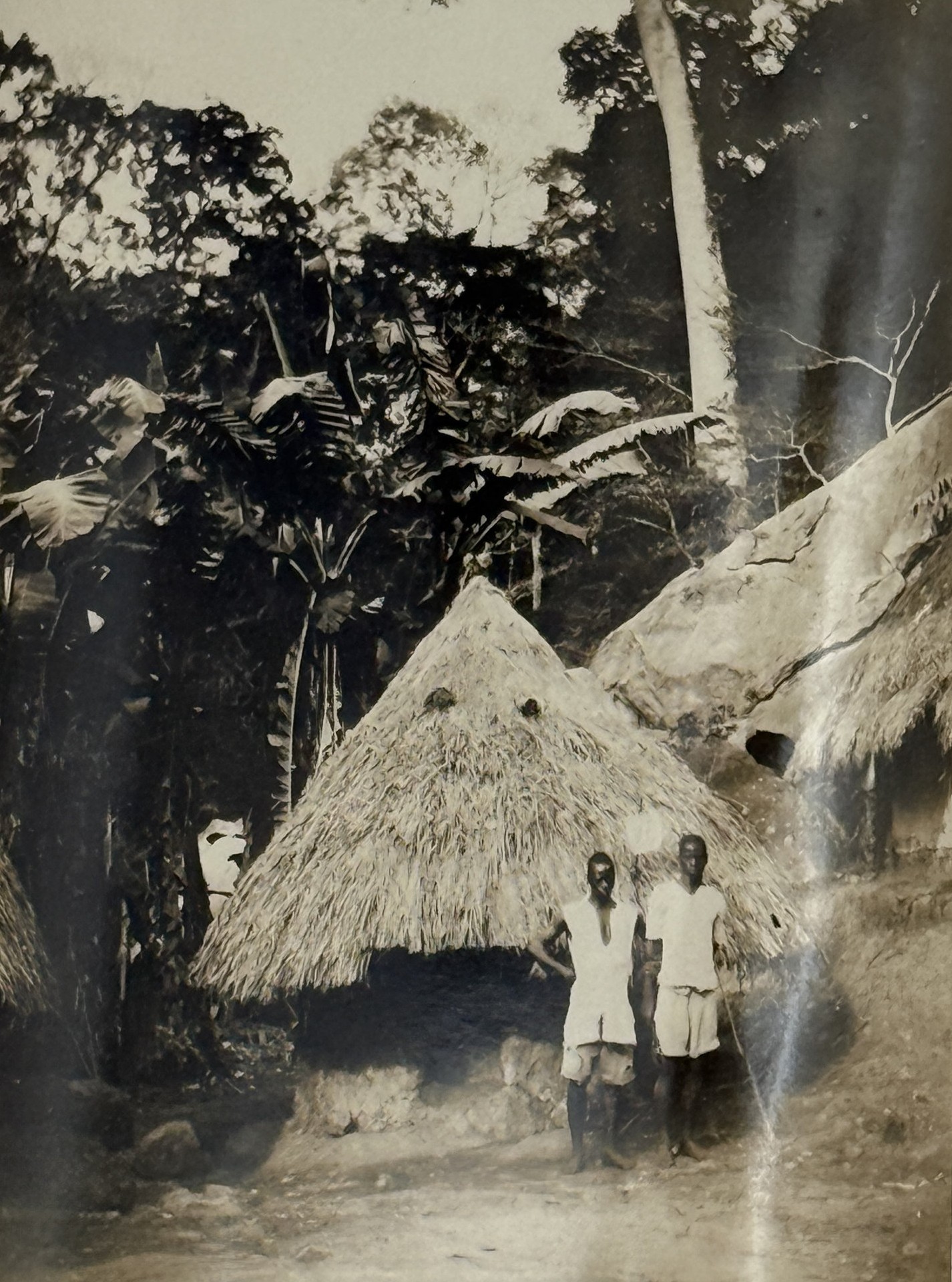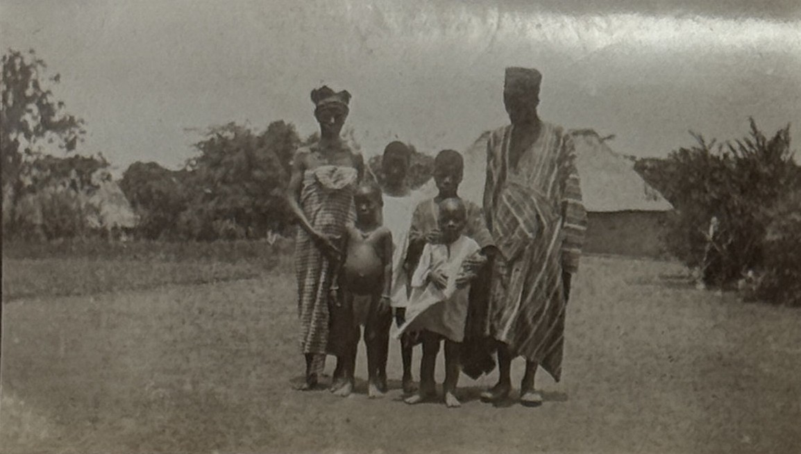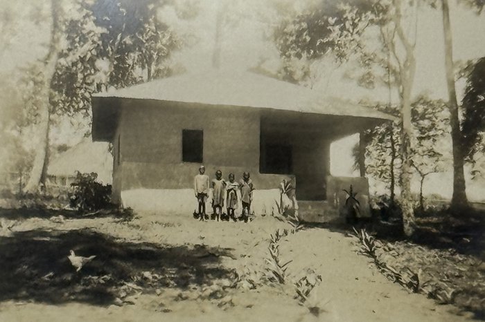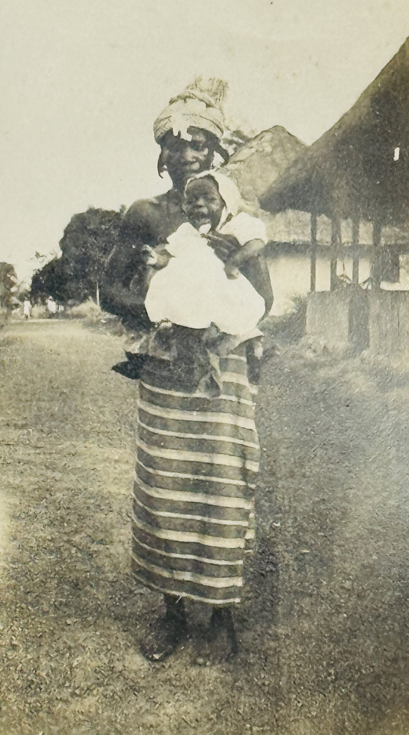 Images of the U.B. station in Taiama show the mission house, hospital (“marking the site of Tiama hospital, 1934,” the building in 1934 and 1937 “caretaker’s bungalow at Tiama hospital, built 1935,” “Kono people present at the dedication of Tiama hospital”), dispensary (“Tiama dispensary bungalow, Miss Akin and I are standing on the street…”; “the road in front of Tiama dispensary,”), school (“Tiama school house and part of school, Nov. 1916,” “Tiama school,” “school children in the mission yard, Tiama”), “the house where the Women’s school was held, Oct., Nov. 1932, Tiama,” and several portraits (“part of the women who attended the Women’s school at Tiama. No. 1 Mrs. Sarah Ferguson, No. 2 Mrs. Alice Waver, Mrs. Ferguson was one of the teachers <…>;” “Women who attended the Women’s school,” newly wed “Mr. & Mrs. Walter T. Walseley, Tiama, 1934,” “a Tiama dispensary baby, 1934,” “Mommy Yenken and grandson Samuel Miller, Tiama, 1934”), &c.