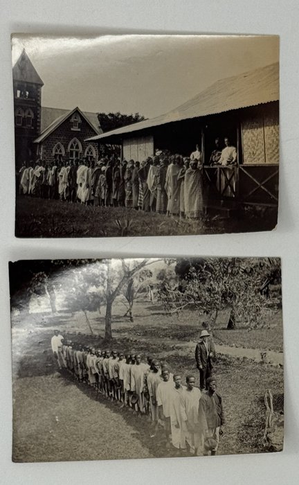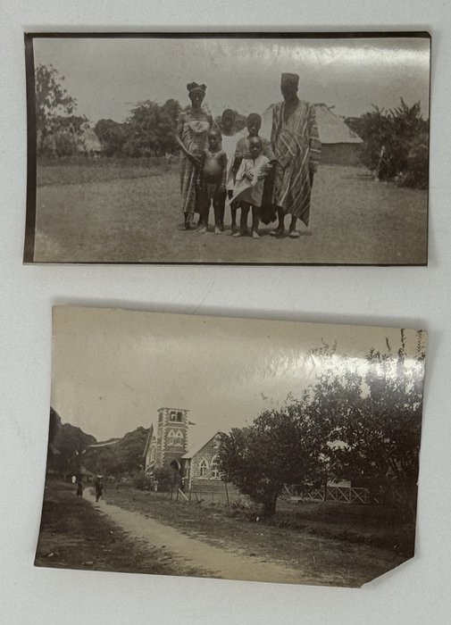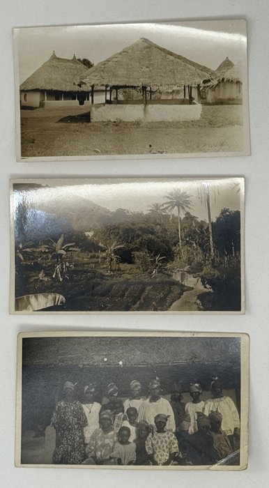 Historically significant, extensive private archive of original gelatin silver photographs, real photo and printed postcards documenting the service of a noted American Christian missionary in Sierra Leone, Minnie E. Eaton, supplemented with a rare edition of a book of Bible verses which Eaton translated into Mende, the main language of the country. Eaton belonged to the Church of the United Brethren of Christ, an American evangelical denomination which started its missions in Sierra Leone in 1855. Eaton served in Sierra Leone for 44 years (1898-1938), under the auspices of the Brethren’s Women's Missionary Association. During her leave after the first term (1894-1898), Sierra Leone was taken over by a popular uprising caused by the new hut tax, and all but one American missionary was massacred, and the mission stations in Rotifunk and Taiama were destroyed. Despite that, Minnie Eaton returned to her service in 1900, supervising the rebuilding of the church in Taiama, which was constructed with the use of the rock where two American missionaries, Rev. & Mrs. L.A. McGrew, were beheaded.