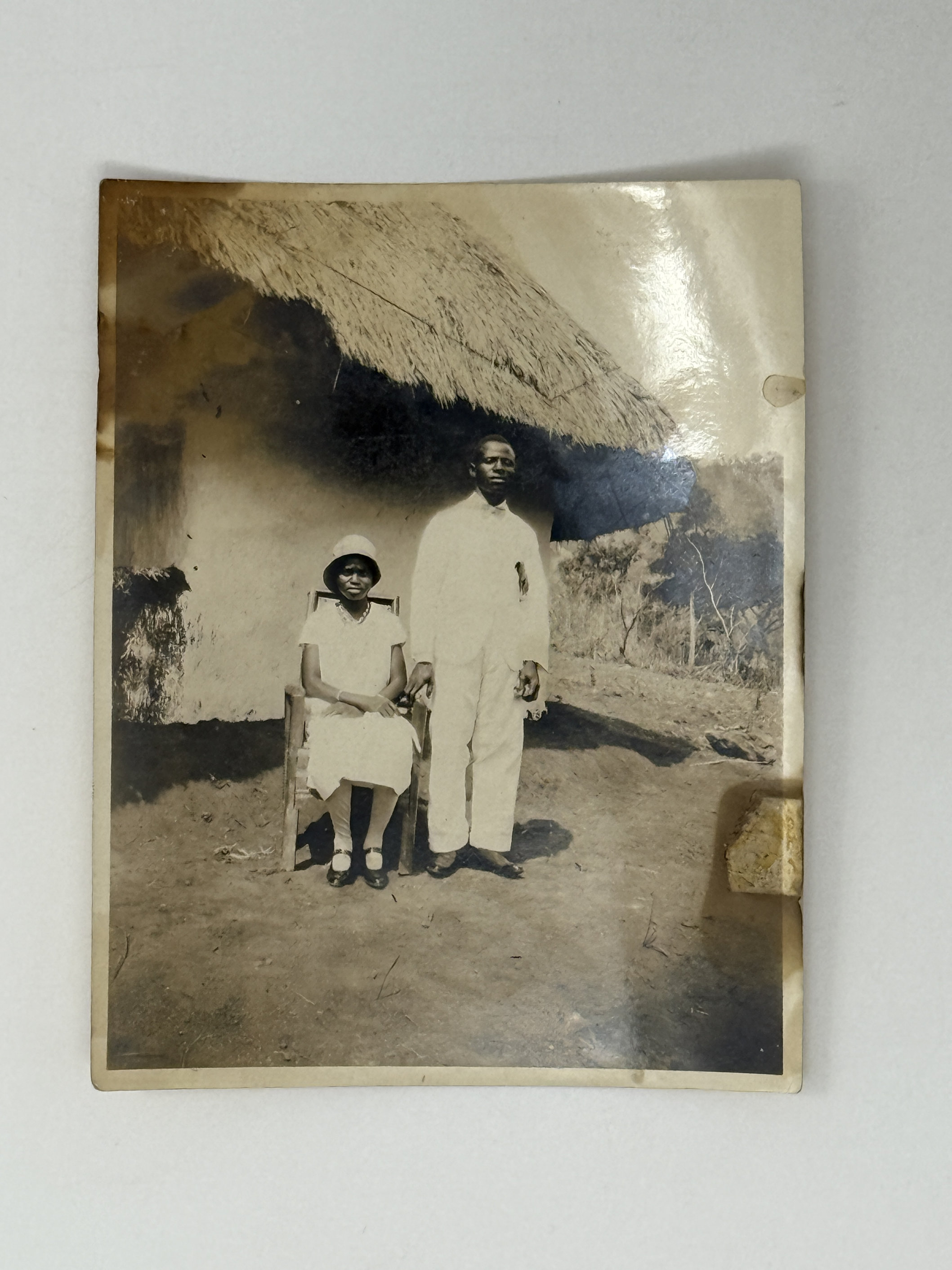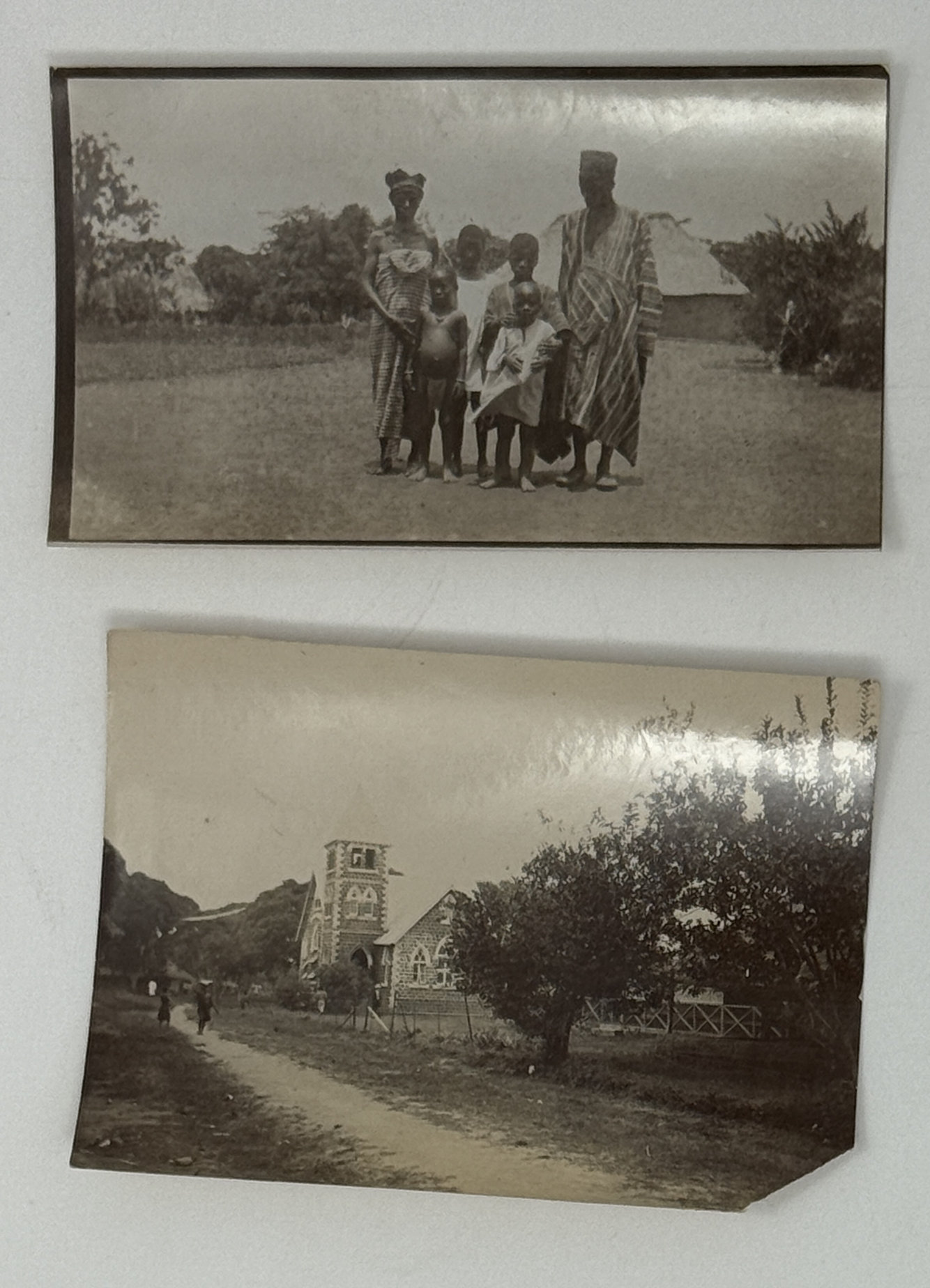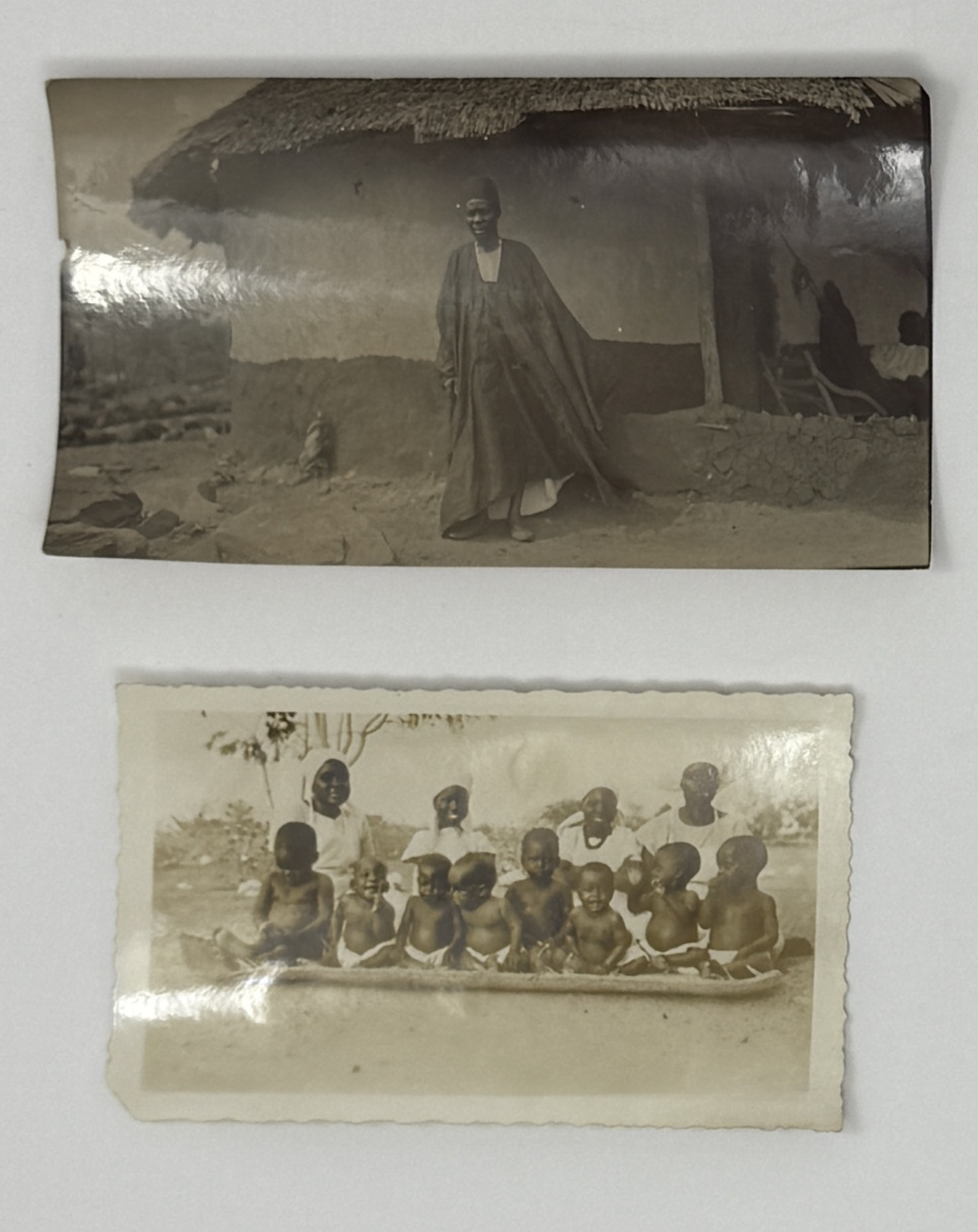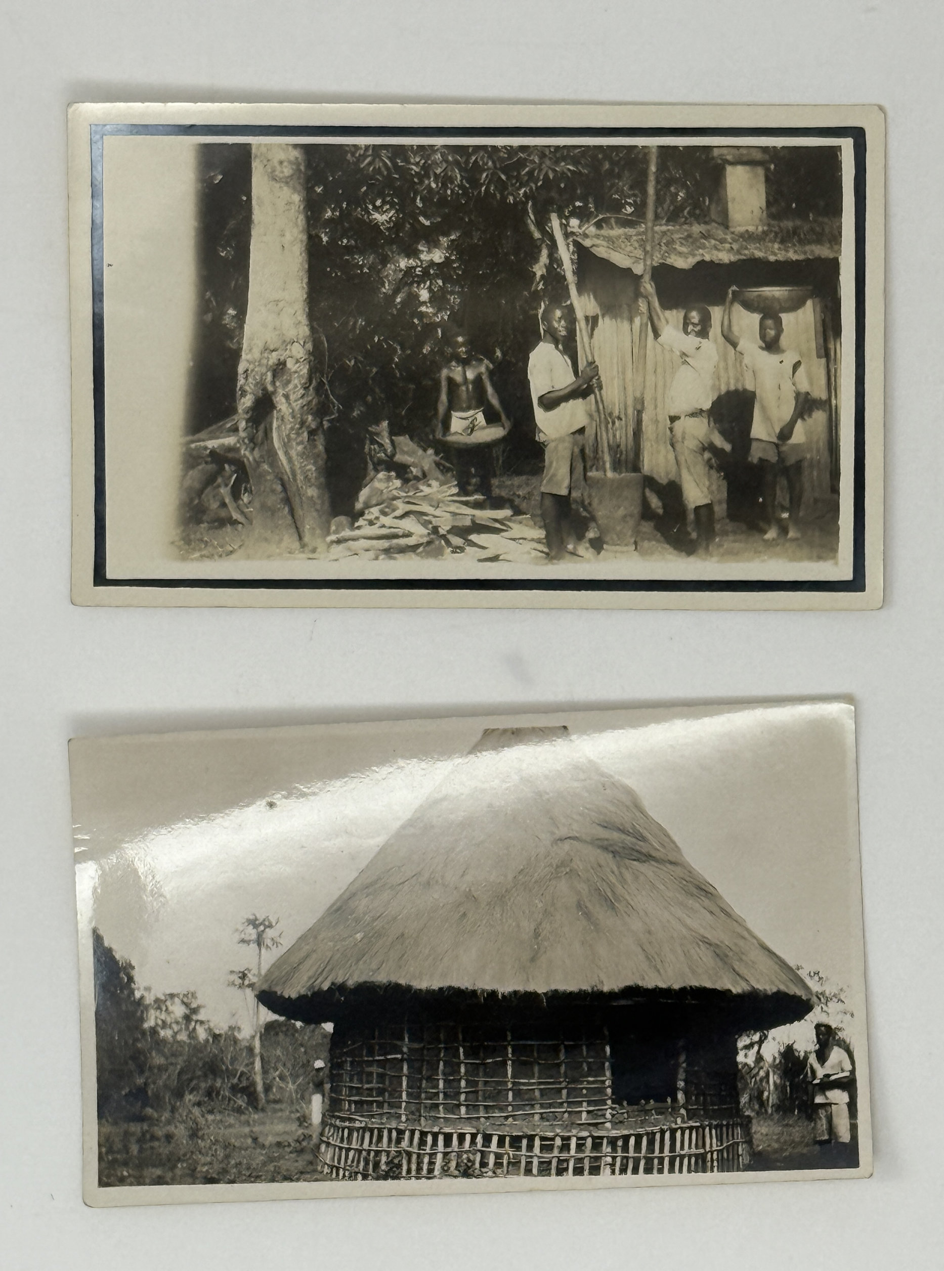 Most photos in the collection show the missionary stations in the Mendi region of Sierra Leone (Moyamba and Taiama). Photos of Moyamba show local mission house and parsonage, “shop across the street from Moyamba mission house,” “incomplete mud house in Moyamba,” “a superstitions building in chief’s compound here,” “Moyamba girls on their way to commencement, 1936,” natives “carrying stones for the Moyamba church,” a portrait of “Jamne chief at Moyamba, chief’s compound,” &c.