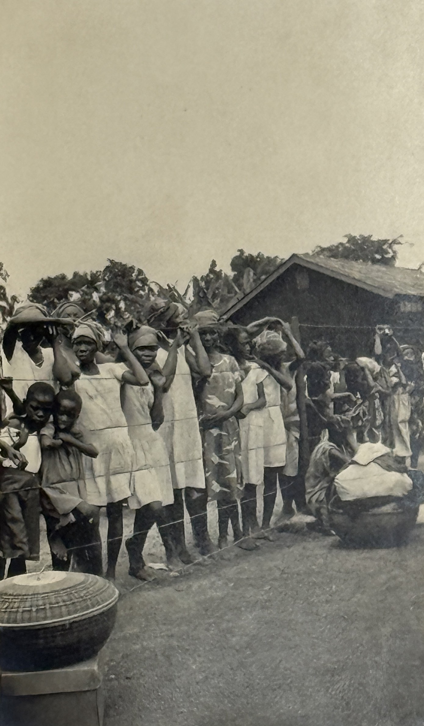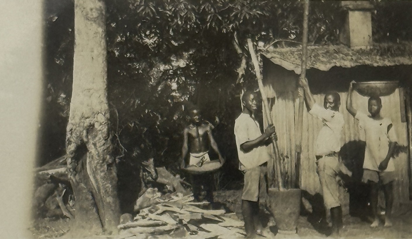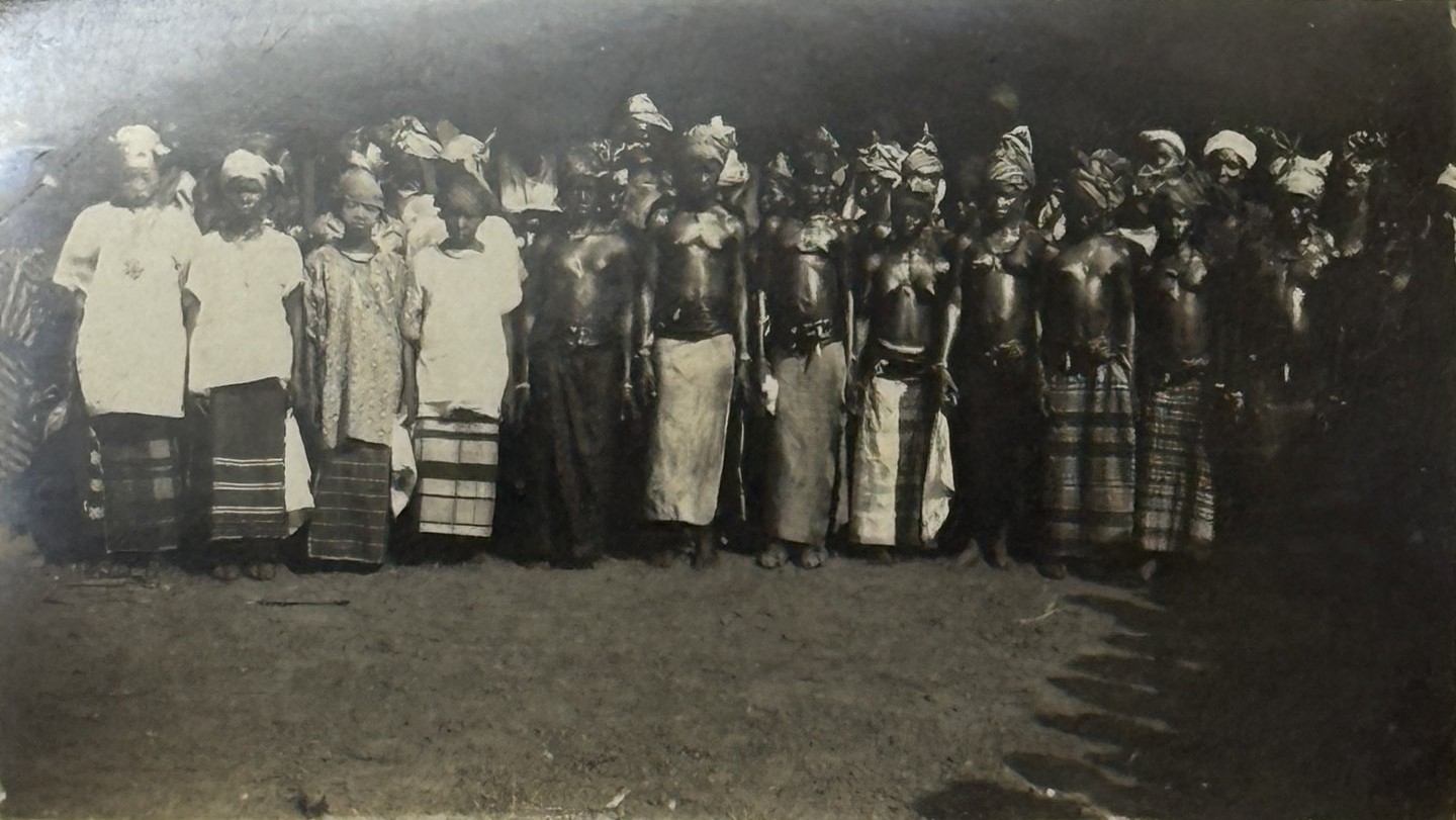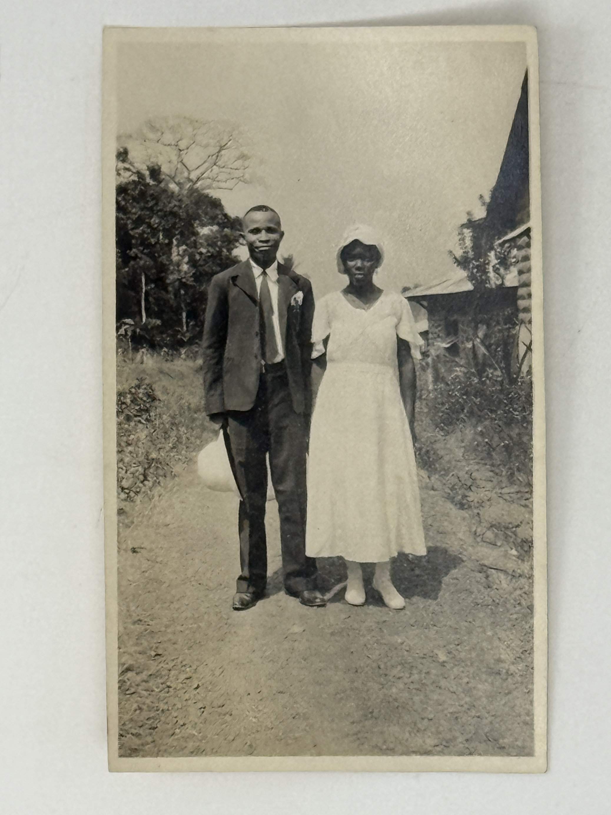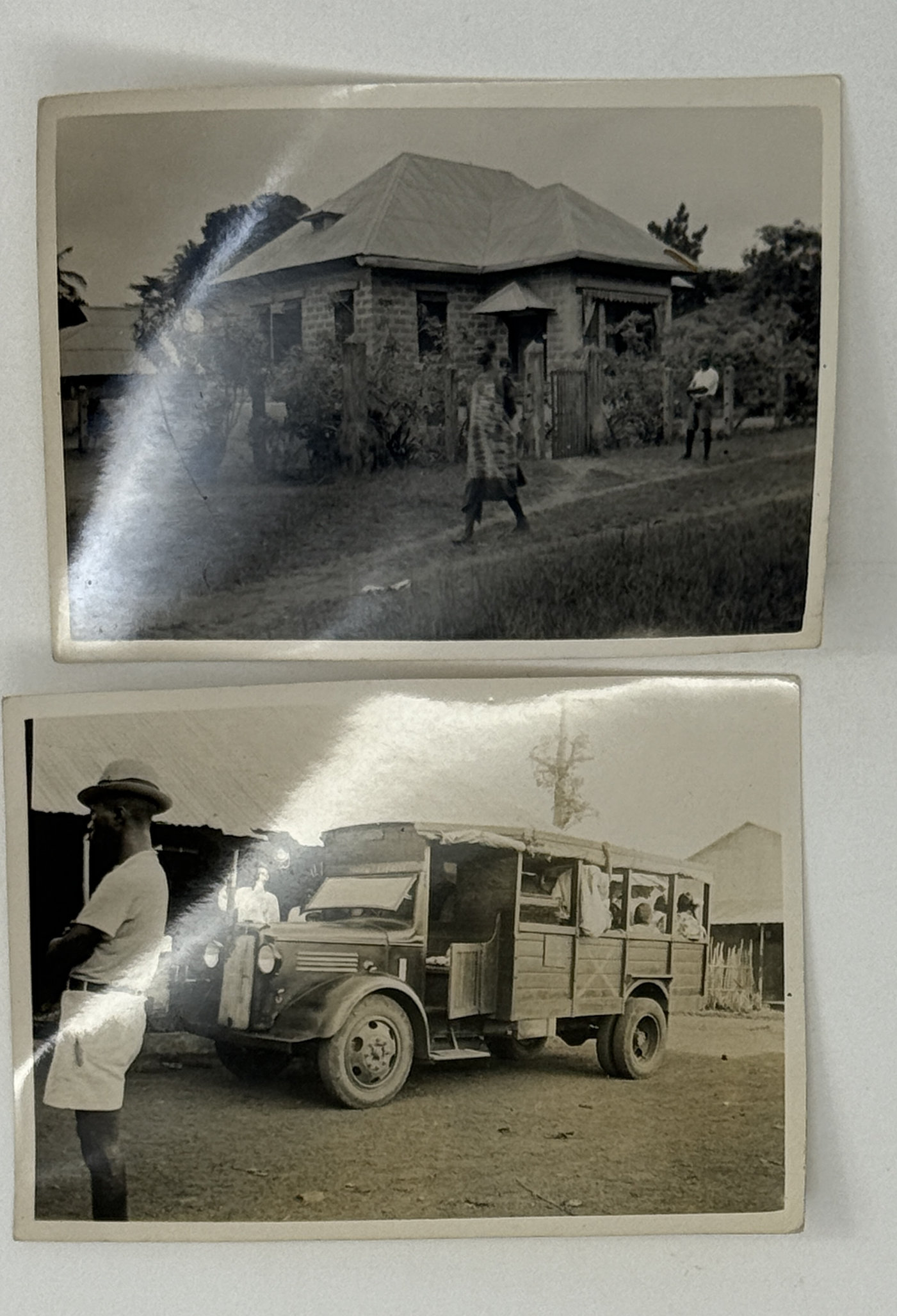 Most photos in the collection show the missionary stations in the Mendi region of Sierra Leone (Moyamba and Taiama). Photos of Moyamba show local mission house and parsonage, “shop across the street from Moyamba mission house,” “incomplete mud house in Moyamba,” “a superstitions building in chief’s compound here,” “Moyamba girls on their way to commencement, 1936,” natives “carrying stones for the Moyamba church,” a portrait of “Jamne chief at Moyamba, chief’s compound,” &c.