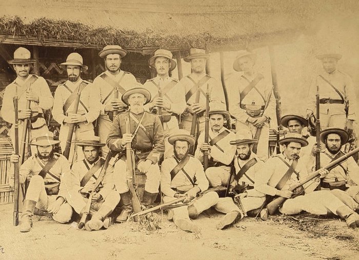 Overall an important collection of original rare albumen photographs, taken during Portuguese military survey expeditions to define borders between modern-day Mozambique, South Africa and Zimbabwe in the 1890s.