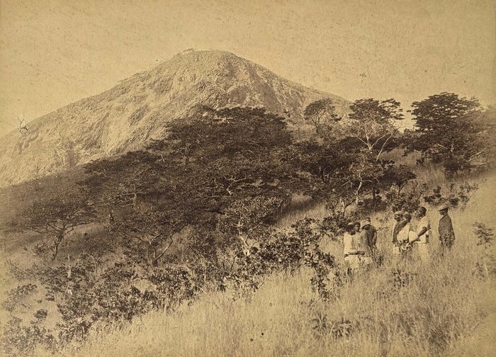 Over forty photographs document the Portuguese survey expedition to the western frontier of the Manica province. The images of Pungwe River and its tributaries (Rio Vunduzi, Rio Xitora/Txatora and Rio Inhamucarara/Inyamkarara), as well as of Buzi River and its tributary Revue River, show river valleys, the town of Sarmento, villages and expedition camps in Neves Ferreira, Sarmento, on Vunduzi, Txatora and Revue Rivers. There are also views of Chimoio and nearby mountains, “Villa de Gouvea” (Catandica, near modern-day border with Zimbabwe), “valle de Menene,” “Rio Zonoe” (Zonue), Chimanimani Mountains (general view, quartz boulders), expedition camps in “Mussurize” (Mossurize district), “Mandanjiva,” on the “Muahira” and “Mussica” Rivers, “kraal de Murivani” (Moribane), “Monte Gorungue,” “Monte Panka” (Panga), Portuguese frontier post in Massi Kessi (general view, customs post, interior of the fort), &c. The photos were evidently intended for official use; identical images were found in the digital collections of the Arquivo Cientifico Tropical in Portugal (see more).