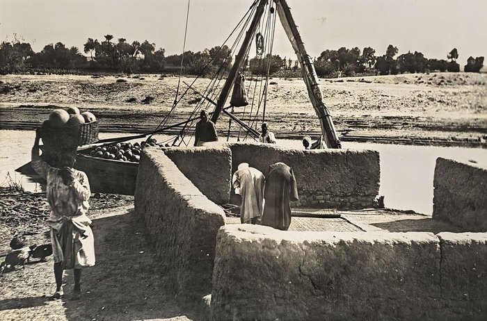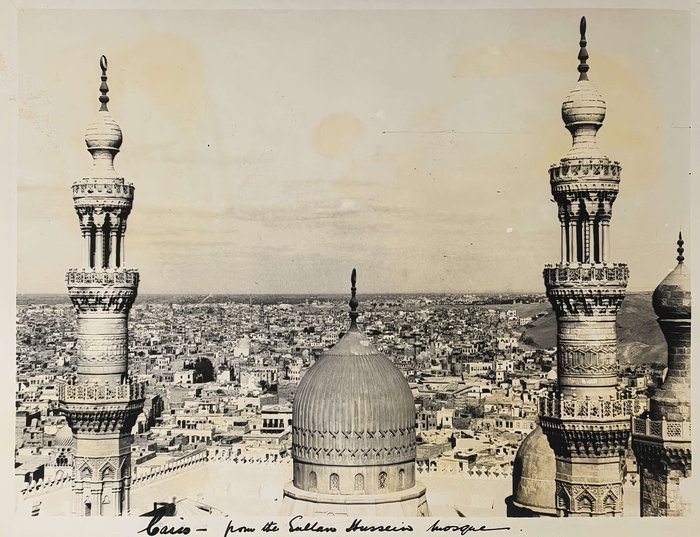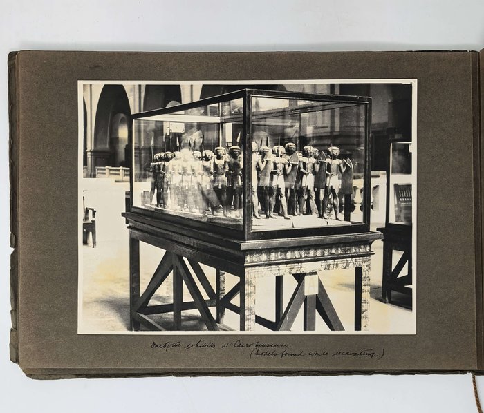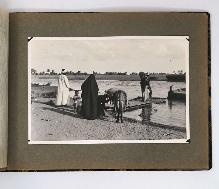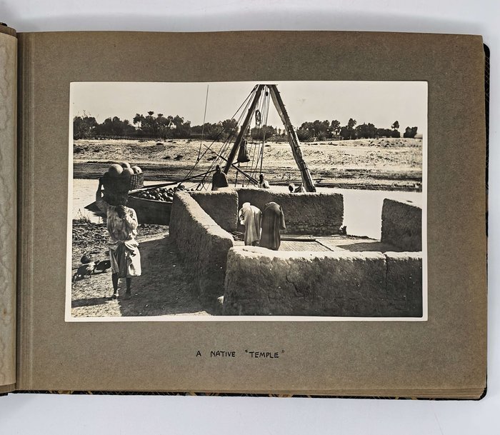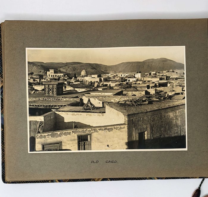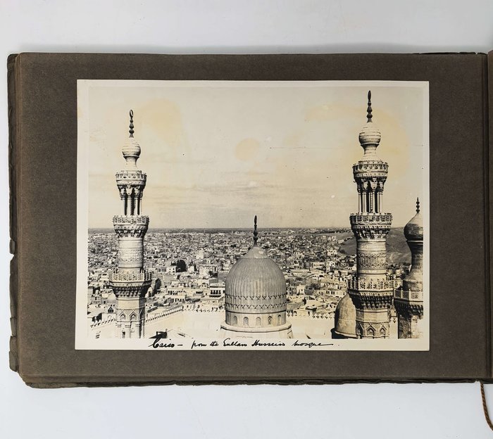 The rest of the photos show Port Said (port and customs house), Cairo (interiors of Muhammad Ali mosque and of the Egyptian Museum, rooftop panorama of “old Cairo”), Alexandria (an aerial view of “Alexandria sporting club ground & race course,” two views of the “Municipal gardens,” “native quarter”), a scene with Muslims praying at a “native temple,” portraits of Bedouins, Nubian women, a native cook near an outdoor fire, &c. There are also four interesting photos showing the Great Sphinx of Giza during the excavation and restoration under the supervision of Emile Baraize (lasted from 1925 to 1936). The images show the Sphinx before the excavations and under repair – with scaffolding around the head and on the side.