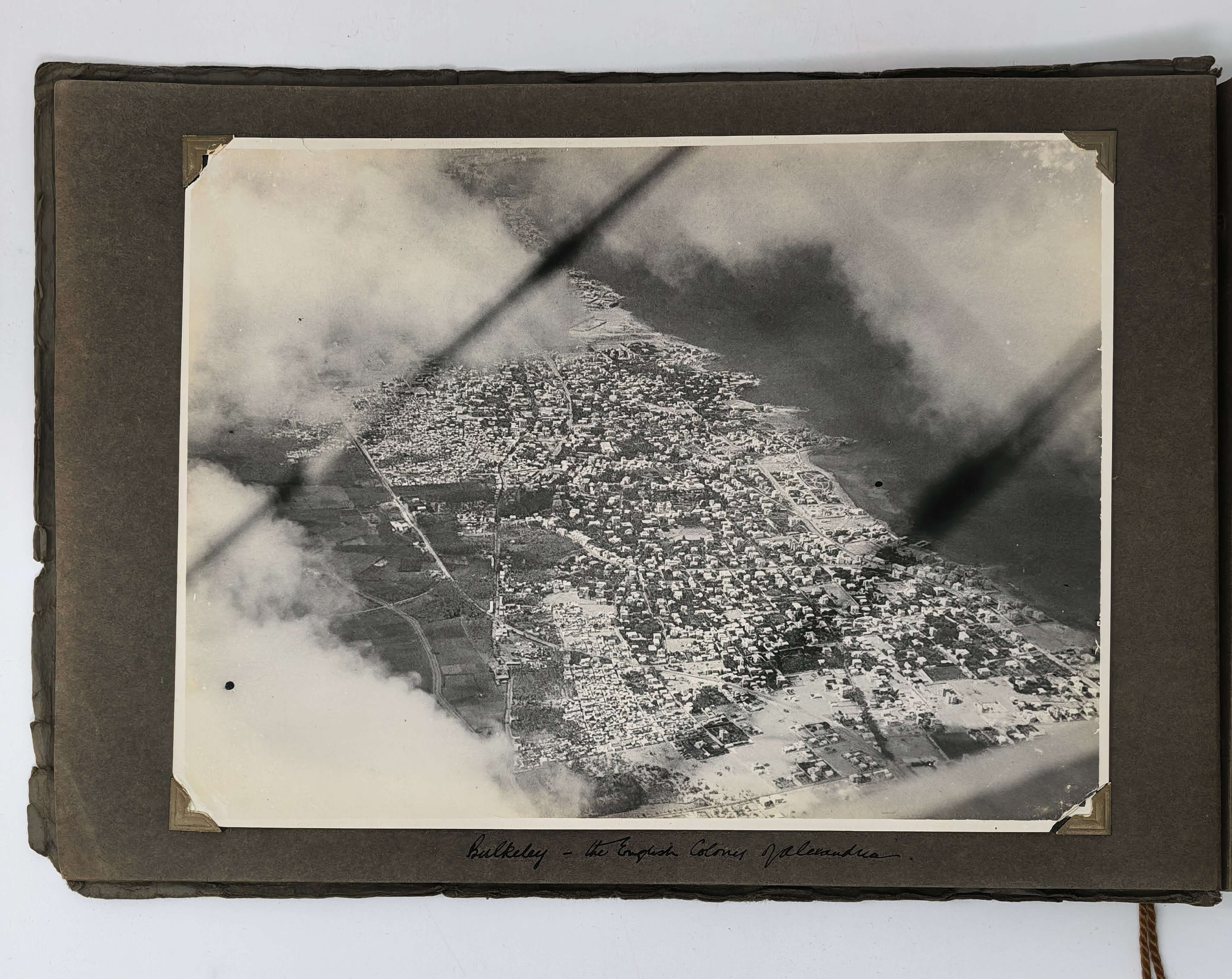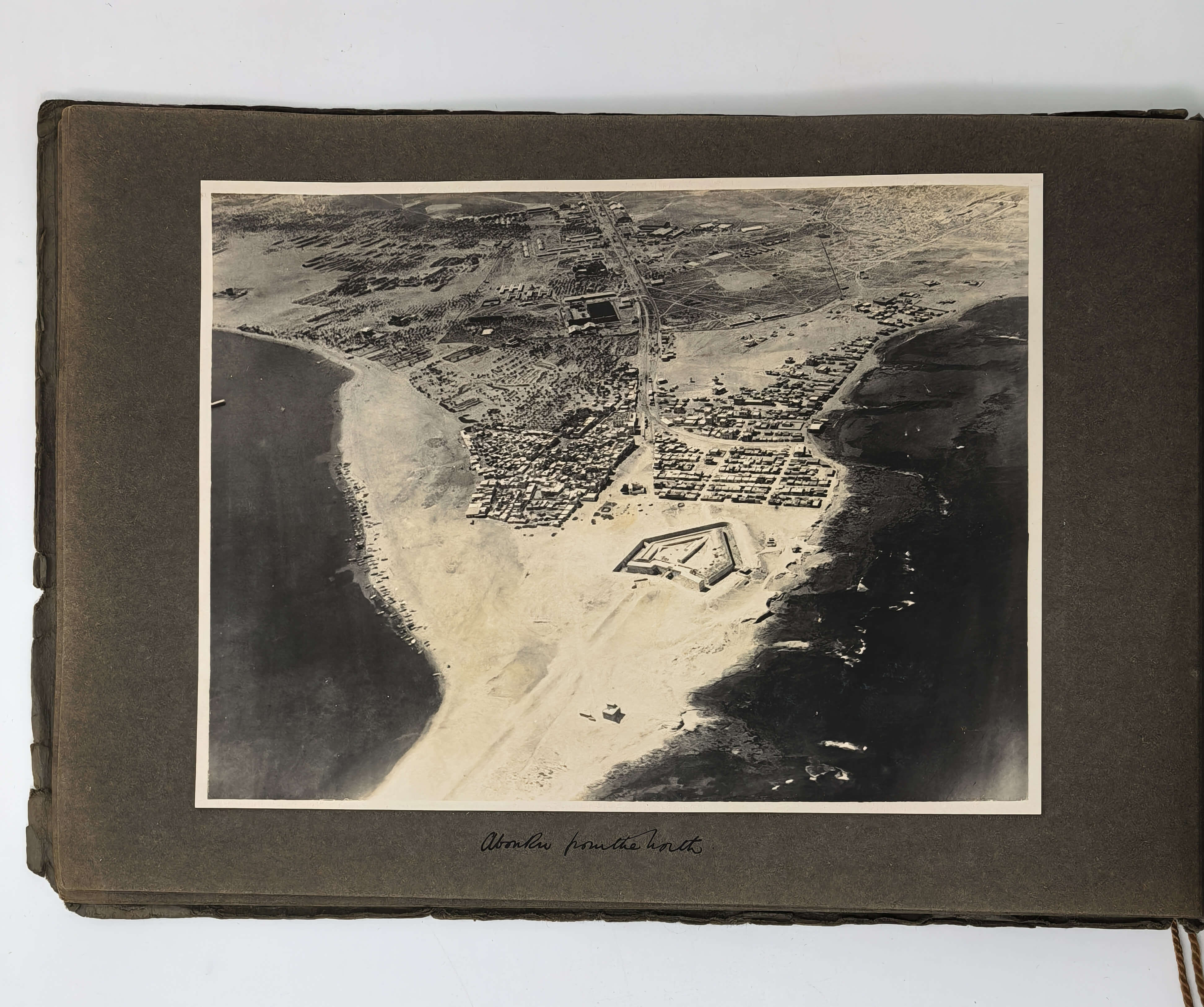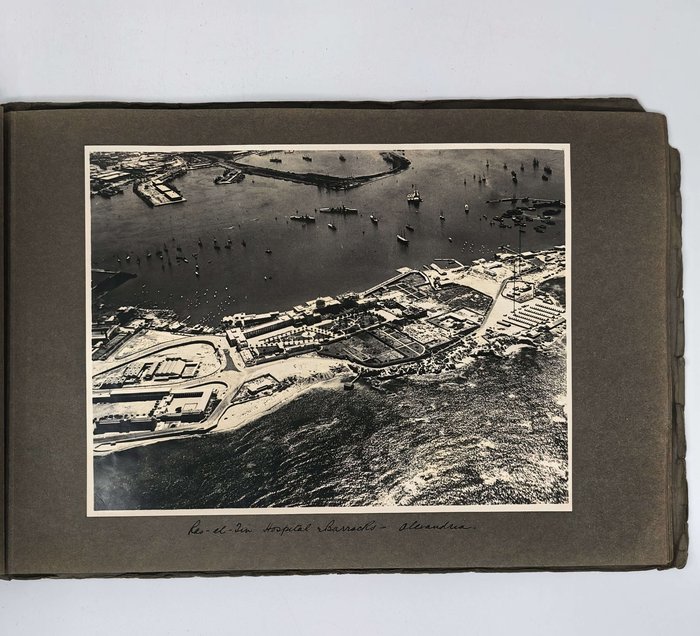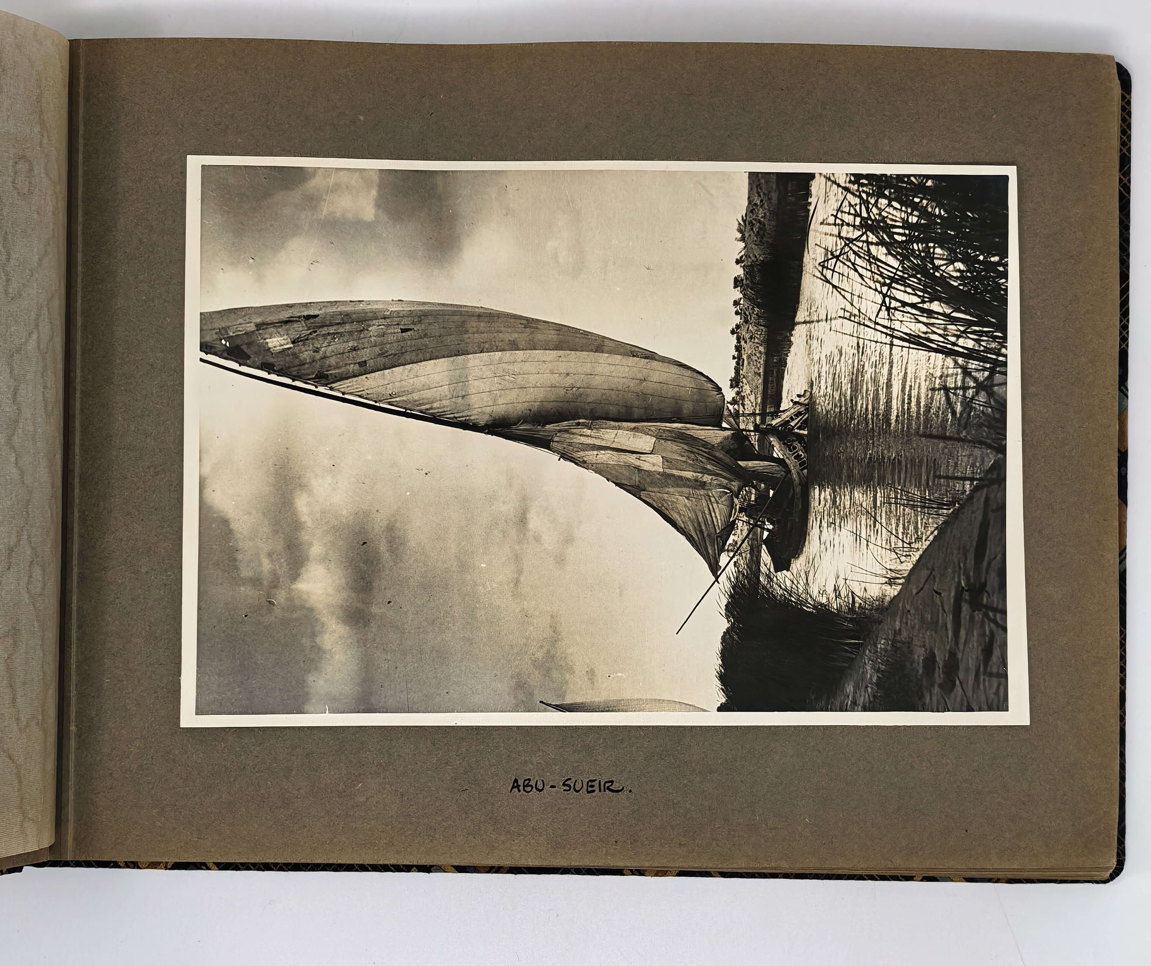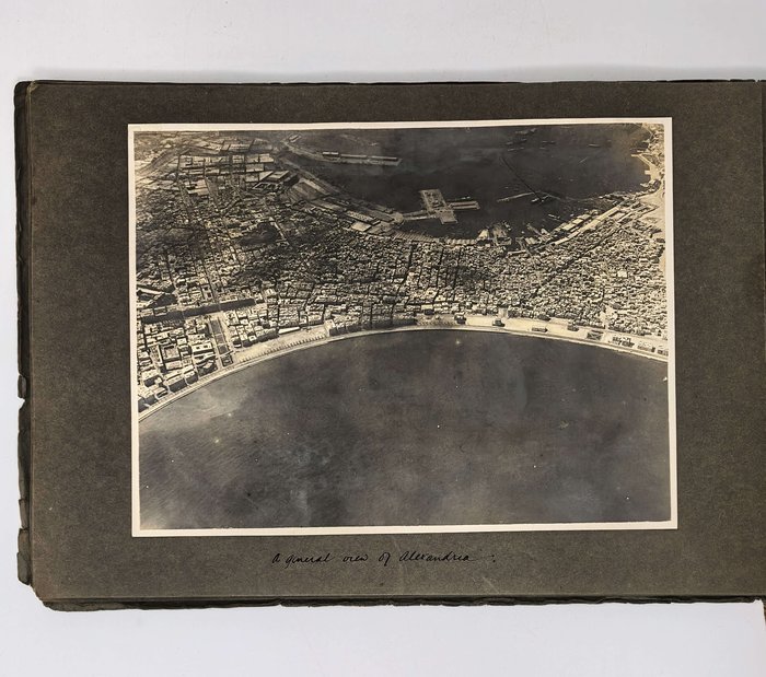 Historically significant, extensive collection of large original gelatin silver photos of British military planes and RAF bases at Abu Sueir (modern-day Abu Suweir Air Base of the Egyptian Air Force) and Aboukir near Alexandria (now defunct), dating back to the 1920s. Apparently taken or collected by a British pilot during his service in Egypt, the albums contain interesting images of aircraft and airfields, as well as a series of aerial views of Egyptian cities and sites.
