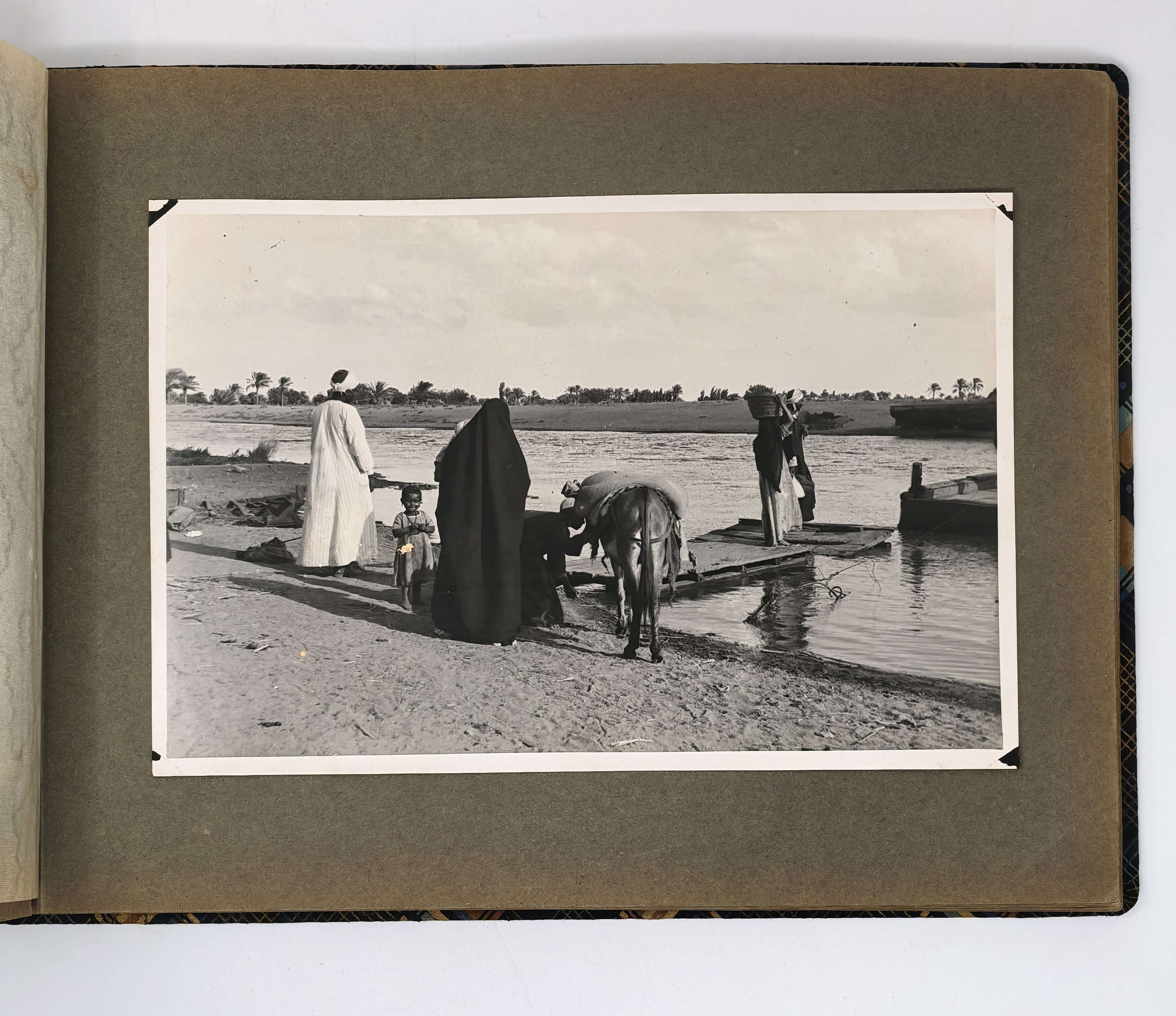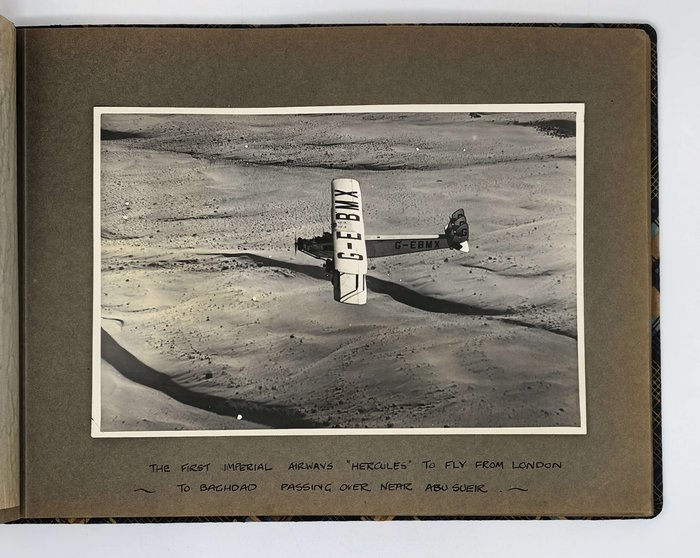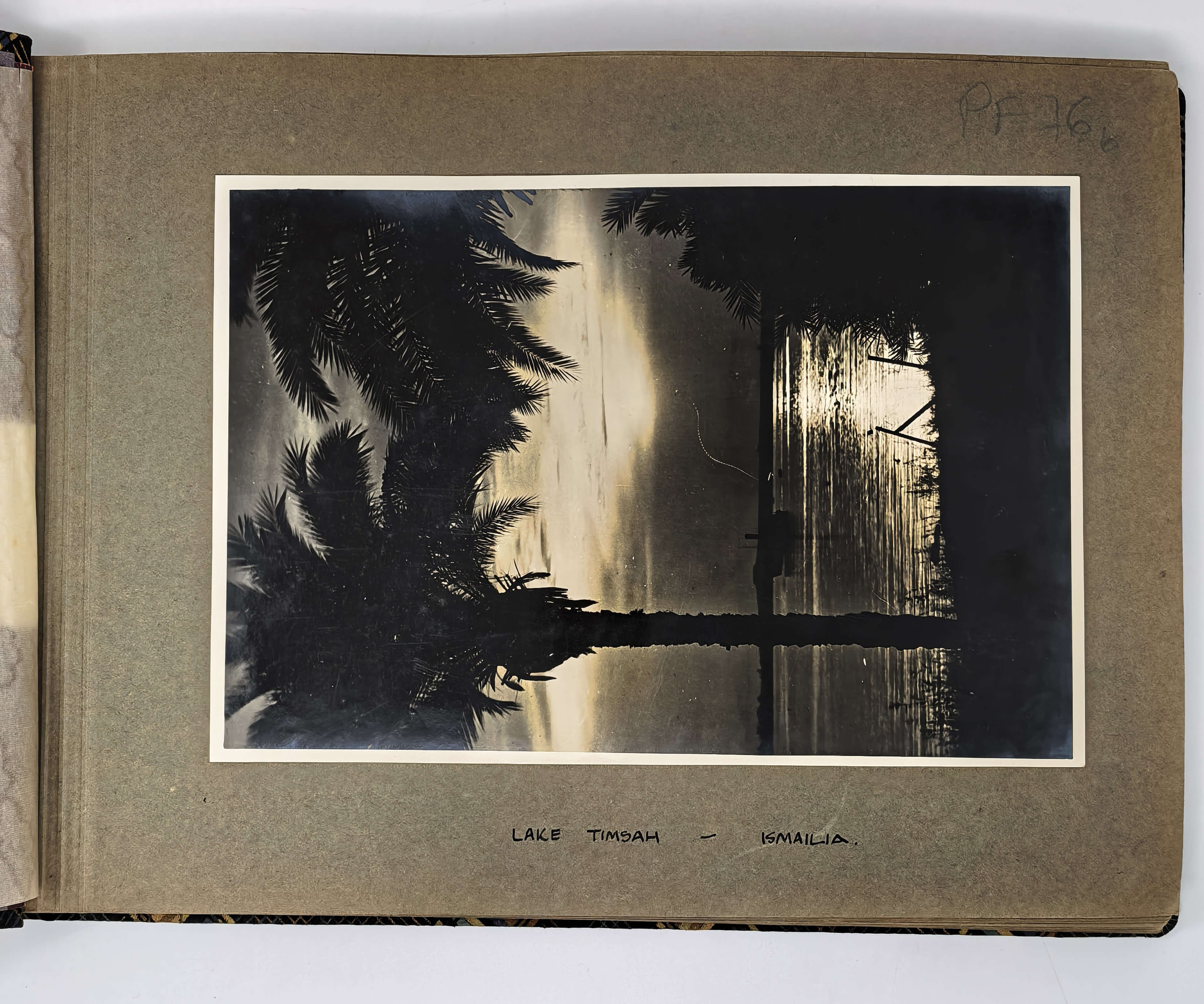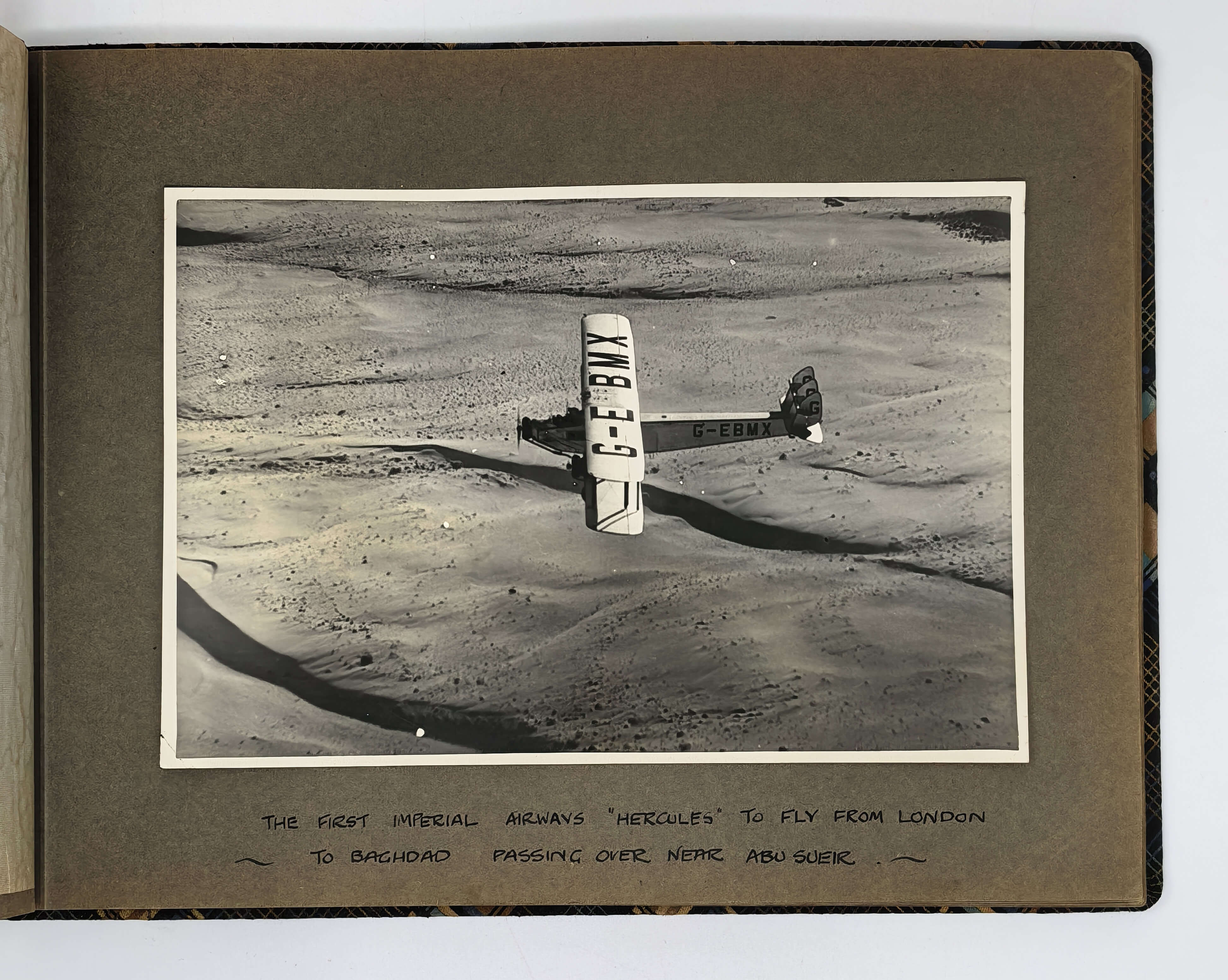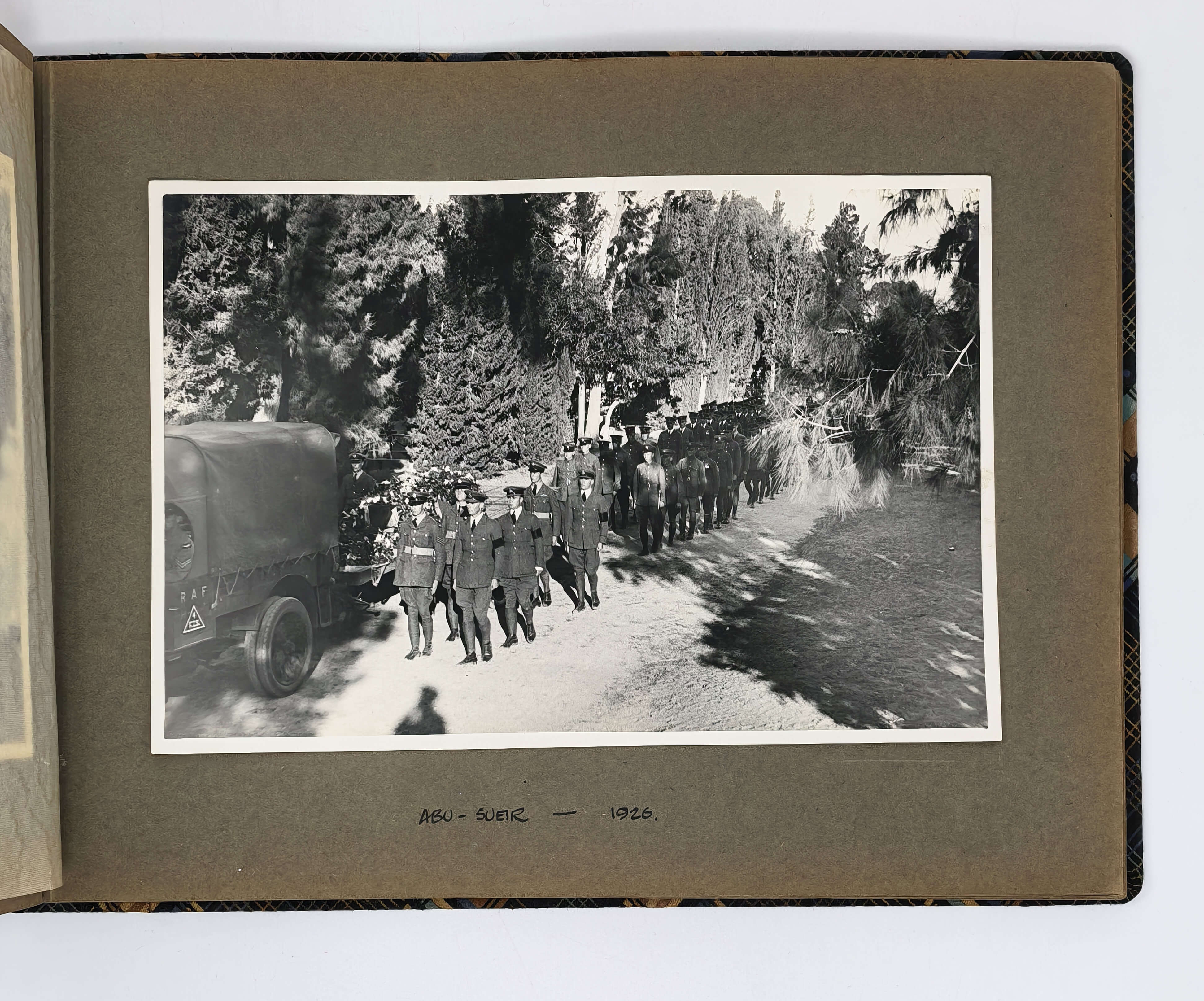 Historically significant, extensive collection of large original gelatin silver photos of British military planes and RAF bases at Abu Sueir (modern-day Abu Suweir Air Base of the Egyptian Air Force) and Aboukir near Alexandria (now defunct), dating back to the 1920s. Apparently taken or collected by a British pilot during his service in Egypt, the albums contain interesting images of aircraft and airfields, as well as a series of aerial views of Egyptian cities and sites.