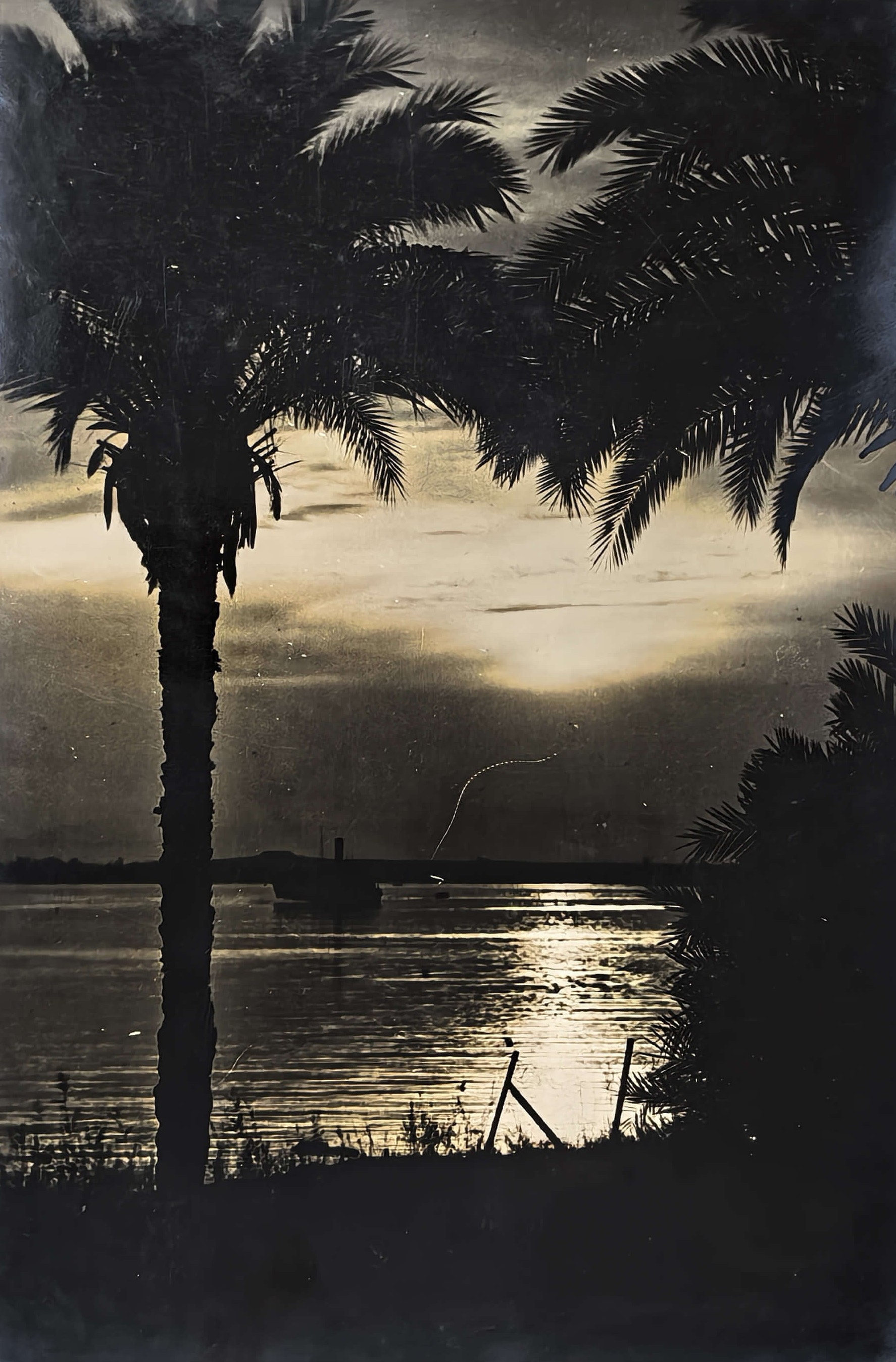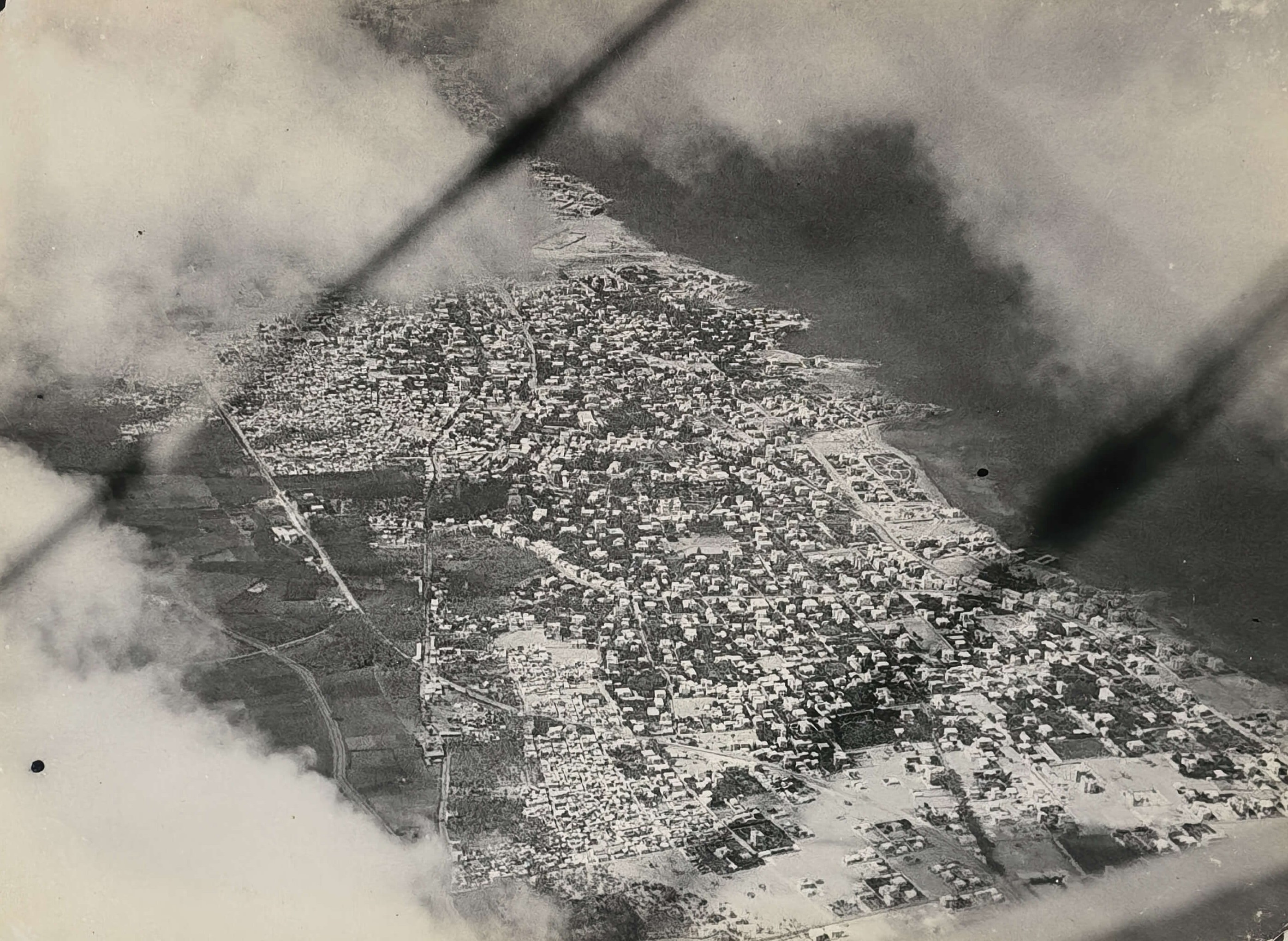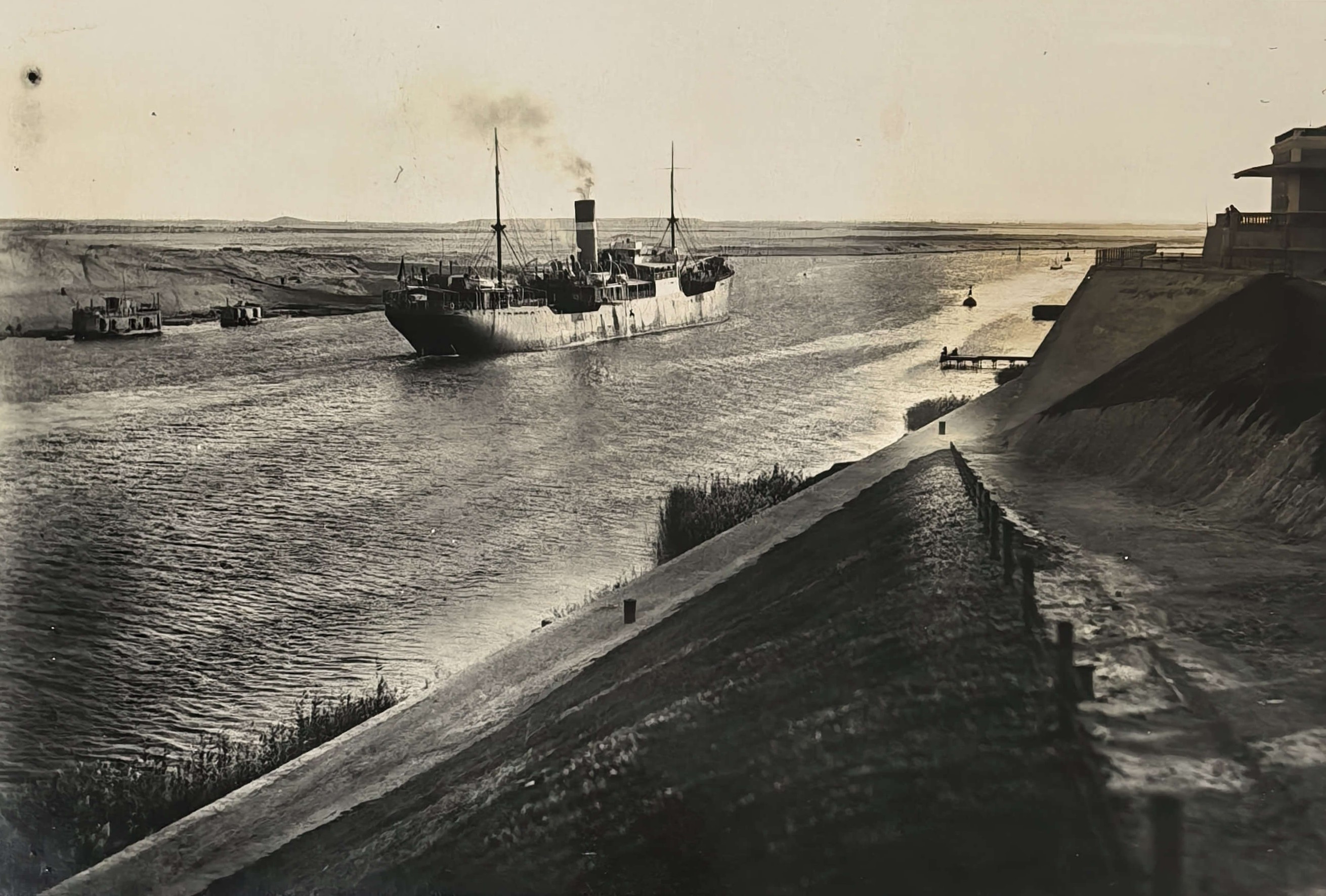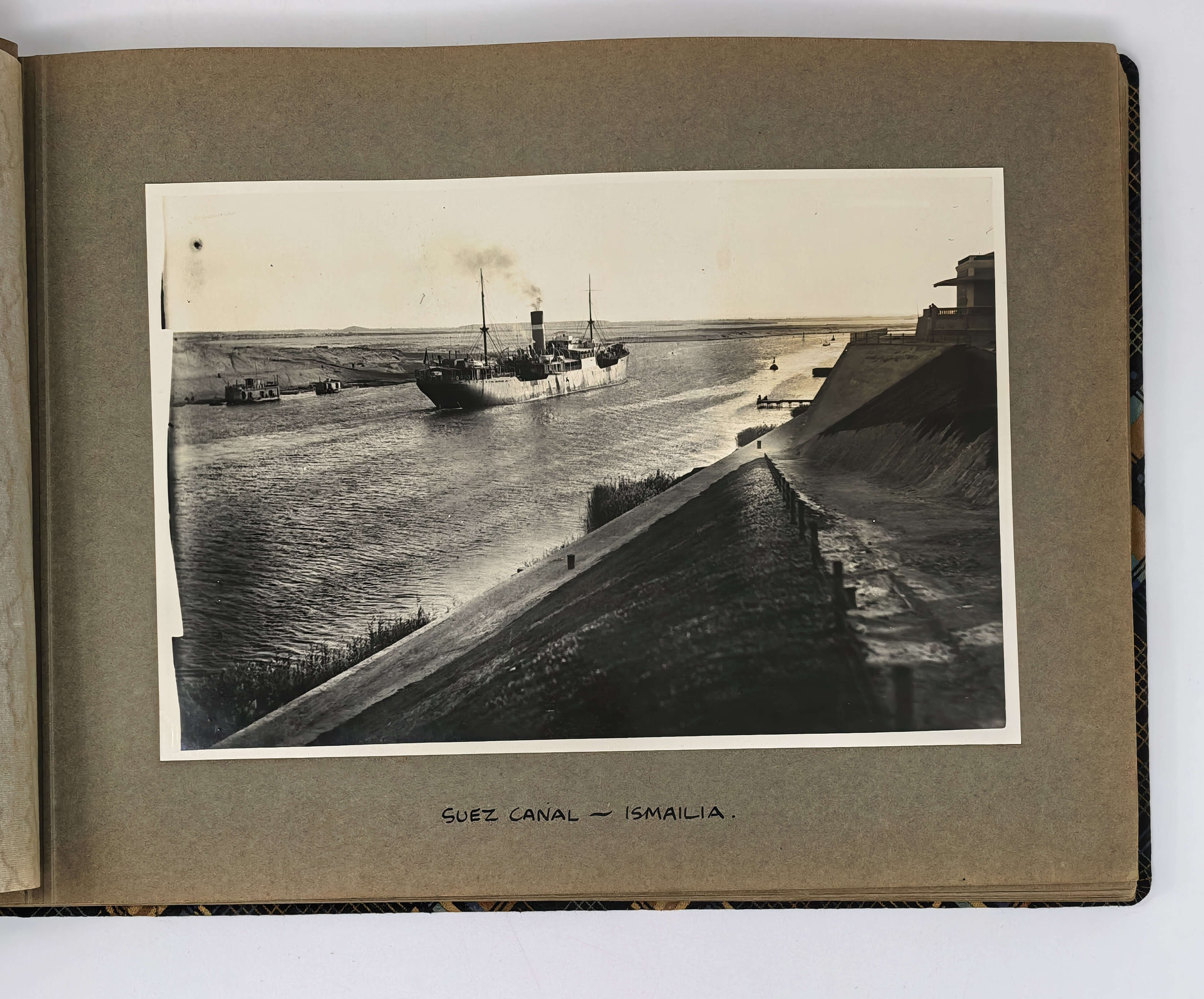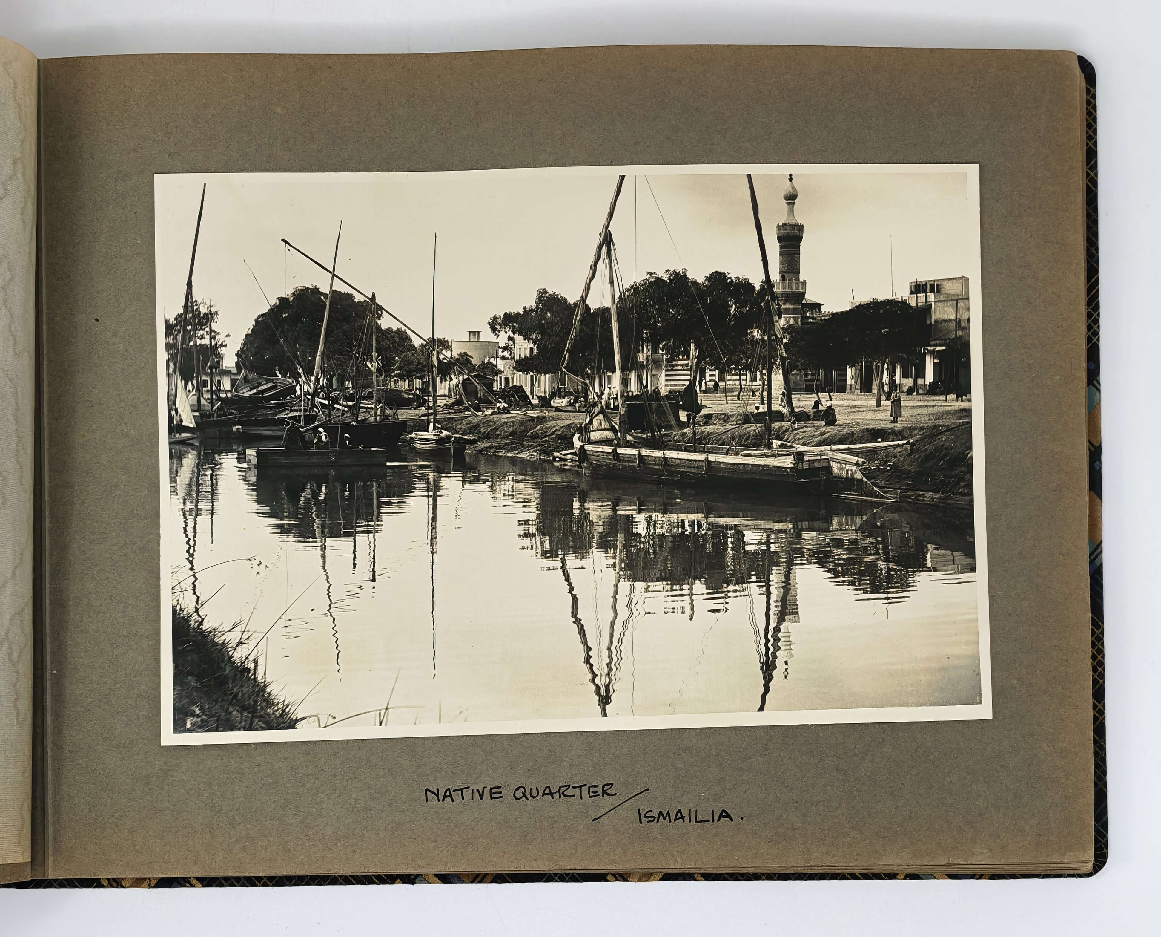 About sixteen images show the environs of the air base – the town of Abou Sueir/Abu Suweir and nearby Sweet Water Canal (“the Canal – Abou-Sueir,” “Sweetwater Canal,” “Nefiche, near A. Sueir,” “the ferry – Abu Sueir”), Ismailia (“native quarter,” “Avenue Mohamed Ali,” “Suez Canal – Ismailia”), Lake Timsah with native boats, &c. Four smaller photos also show Ismailia (general view, “Avenue Mohamed Ali”, “Rue Negrelli”, “the armoured train, Moascar/Ismailia”).