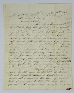 An interesting early northern California letter, written to “Mr. Charles de Lorimier,” a resident of “Linda, Yuba County,” by his friend, who took a sea voyage back to the East Coast in the spring of 1853. The author talks about the conditions of his voyage to New York via Panama (by an overland trail as the Panama Railroad would be completed in 1855) and thence to “DeBuque” (likely, Dubuque, Iowa). He then mentions the house in their mutual property in Linda, which de Lorimier can claim as his own, and several local residents – “Joe Carrick,” “Becker” and the “Muggins.” Overall a nice early original piece of correspondence between Yuba County pioneers.