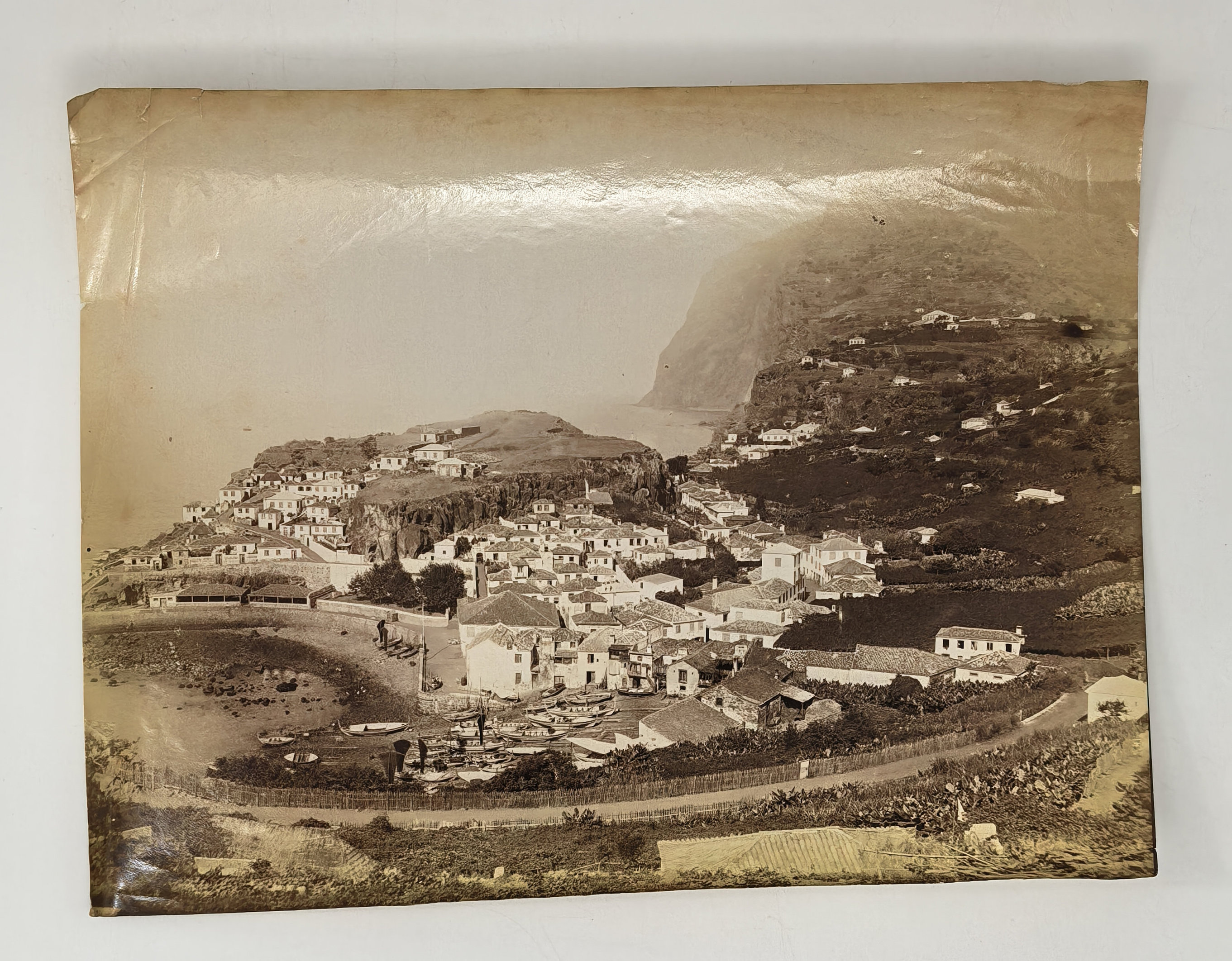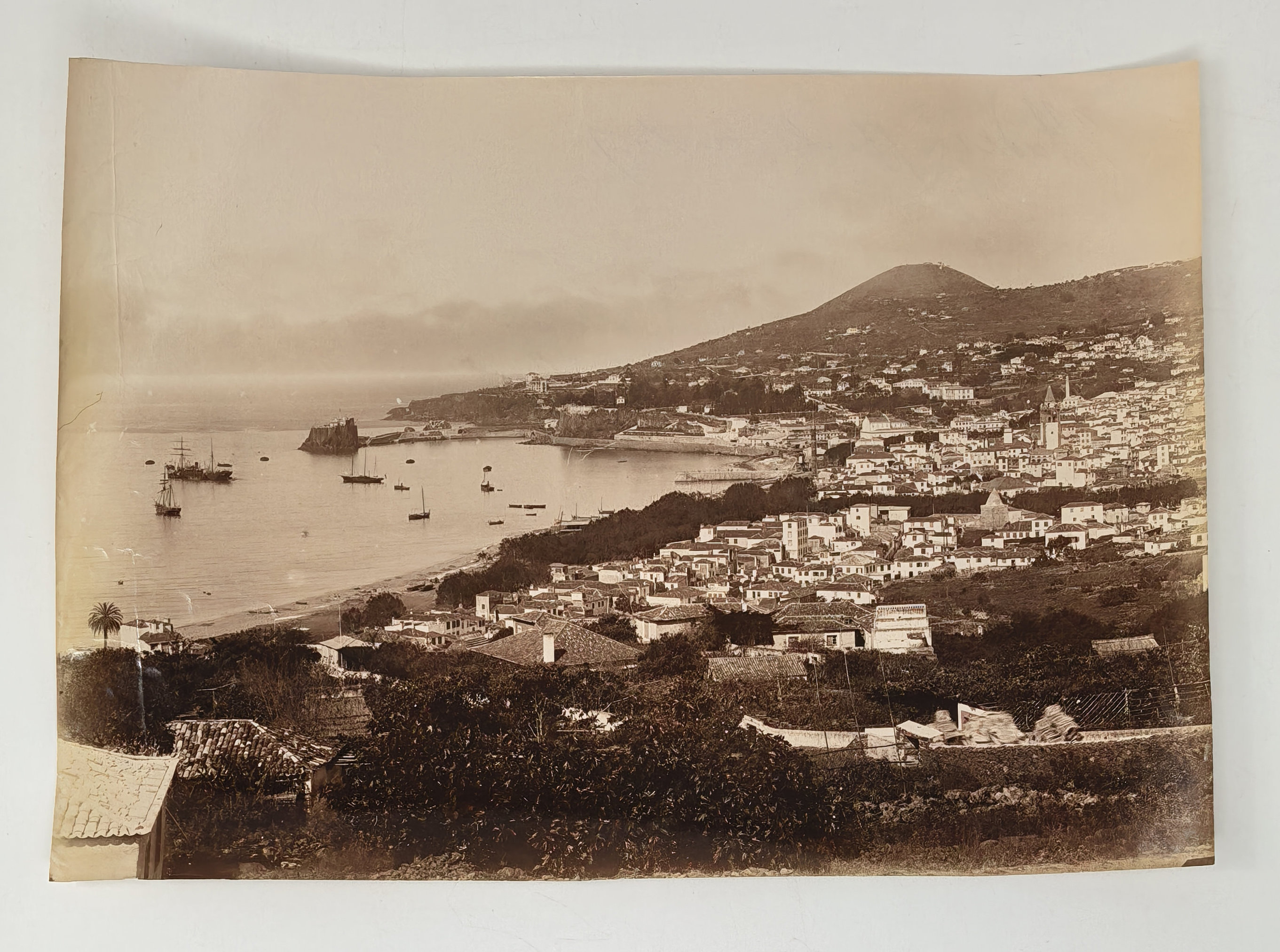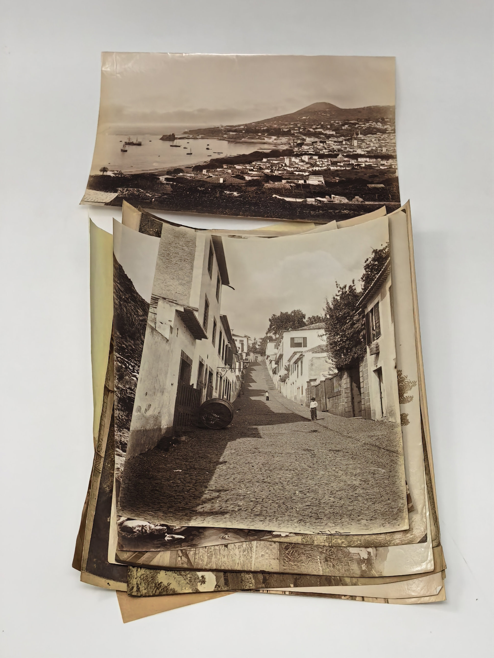Fifteen original albumen and gelatin silver photos, from ca. 21x27,5 cm (8 ¼ x 10 ¾ in) to ca. 16,5x22,5 cm (6 ½ x 8 ¾ in). All images with period pencil captions on verso; three with ink stamps of “Atelier Photographico de A.C. Santos, Funchal-Madeira” on verso; one with an ink stamp of “M.d. O. Perestrello, Funchal-Madeira” on verso. Five larger images with blind stamps “F. Rocchini, Photographo” in the lower corners. One photo with a minor loss of a corner, a few photos mildly faded, but overall a very good collection of interesting photos.