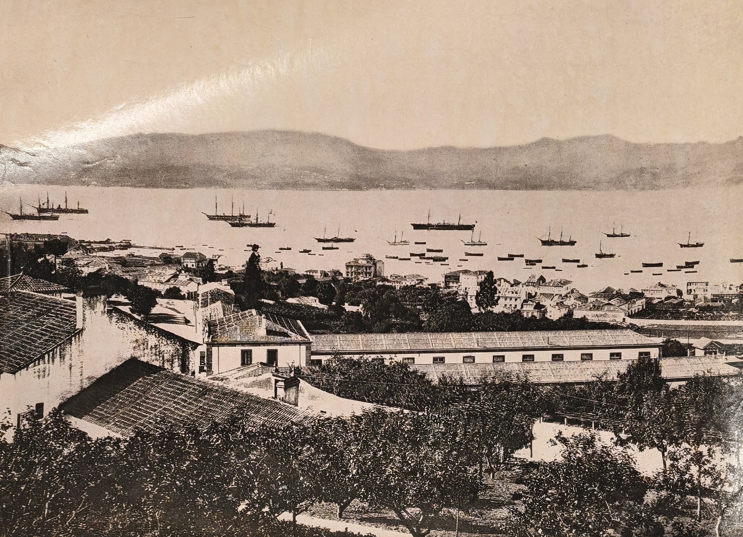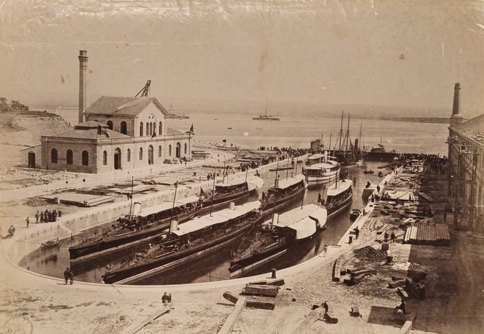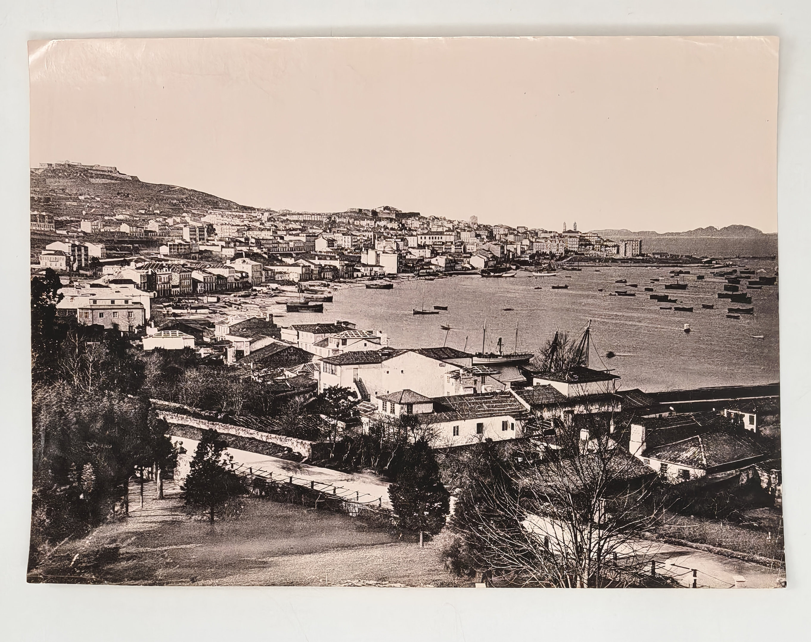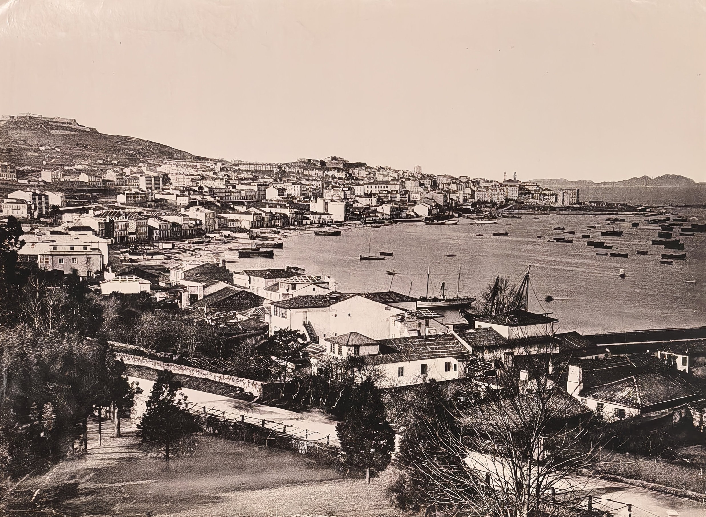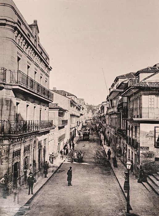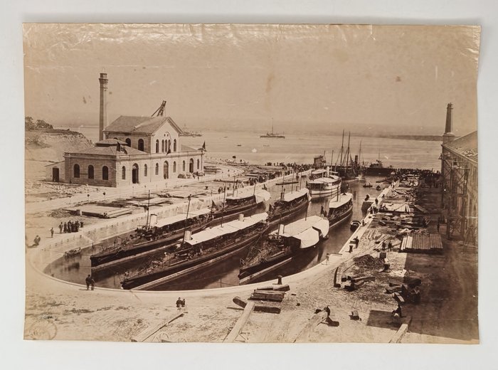 The collection also includes nine photogravures (six by Madrid studio of Oscar Hauser Muller and Adolfo Menet Kurstiner), showing Barcelona (Paceo de Colon, La Rambla, Columbus Monument, fountain in the Parc de la Ciutadella, general view of the port), port city of Vigo (Calle del Principe, general views of the harbour and waterfront, featuring ships of the “squadron d’istruzione italiano”) and Montserrat Monastery in Catalonia.