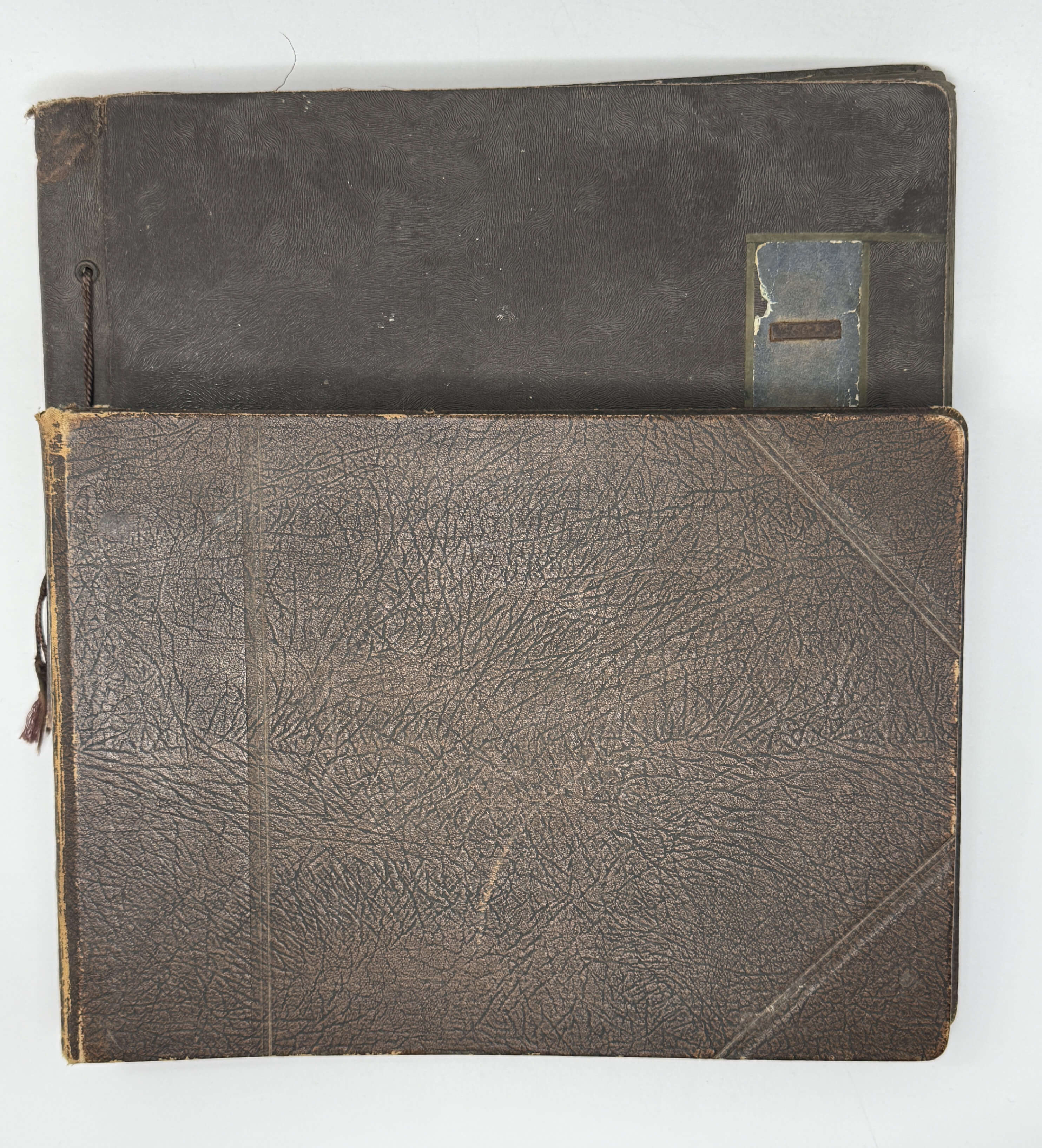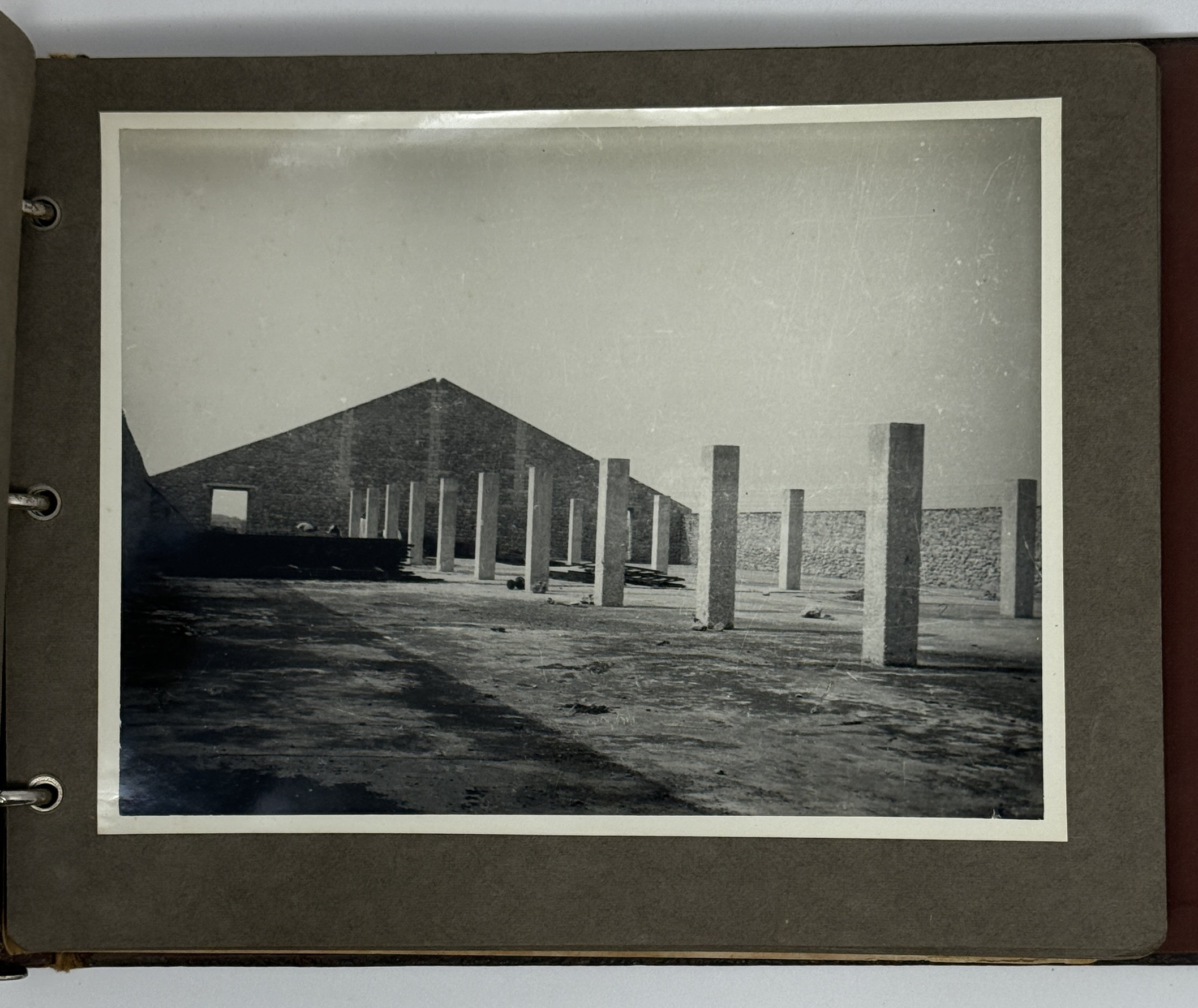 Two Oblong Folio albums ca. 23x32,5 (9 x 12 ¾ in) and ca. 22x30,5 cm (8 ¾ x 12 in). Album 1: 22 card stock leaves with tissue guards. With 22 mounted gelatin silver photos, all ca. 12x17 cm (4 ½ x 6 ½ in); all images with typewritten captions in French mounted underneath. Period brown full cloth album fastened with a string. Several photos detached from the mounts; most leaves detached from the stub and loosely inserted, a few photos mildly faded, but overall a very good album. Album 2: 27 card stock leaves. With 27 mounted gelatin silver photos (including a dozen duplicates of the images in album 1; ten images are in two copies), all ca. 16,5x22 cm (6 ½ x 8 ½ in). No captions. Period brown full cloth binding, rubbed on the extremities and slightly loosened on the hinges. Two images with minor scratches on the surface, but overall a very good album of interesting photos.