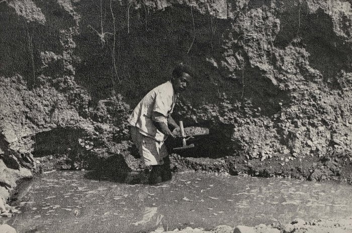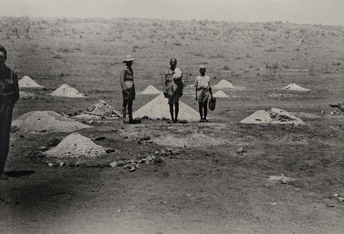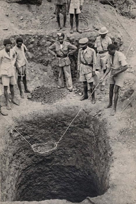The colonial Mining Service in Italian Ethiopia commenced gold exploration in 1936, initially focusing on placer mining near Tulu Kapi in the south-west of the country. “The valorization of Western regions of Ethiopia was entrusted to S.A.P.I.E.-PRASSO and to the Societa Mineraria Italo-Tedesca (S.M.I.T.). <…> The operational infrastructure of S.A.P.I.E. had a clear military setting: the prospecting groups, called “Colonne” (corps), reported to the General Directorate of Research, with offices in Yubdo, and were coordinated by a specialist engineer. In Yubdo, there was also a laboratory for the analysis of samples collected during the various prospecting stages. Each corps was formed by 35/40 Italian and indigenous men, often escorted by Ascari (Eritrean soldiers embedded in the Italian colonial army), and was dedicated to the exploration of a specific district <…>” (Granitzio, F. & others. Tulu Kapi Gold Project: a History of repeated discoveries in Western Ethiopia// KEFI Gold & Copper Co.; see more).