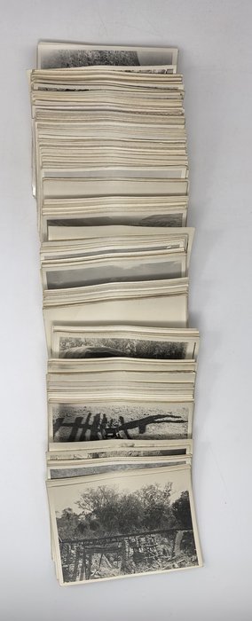 223 loose gelatin silver photos, vast majority are ca. 8x12 cm (3 x 4 ½ in); nine smaller images are ca. 7,5x11 cm (3 x 4 ¼ in) to ca. 6,5x10 cm (2 ½ x 3 ¾ in). No captions; most photos with period ink or pencil numbers on verso. Two photos with minor defects of negatives, several with minor creases on the extremities, a few photos mildly faded, but overall a very good collection of interesting photos.