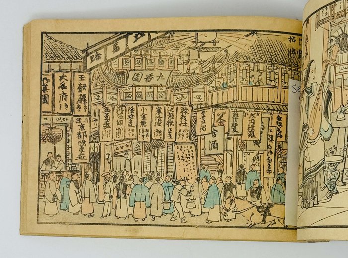 Beisen Manyū Gajō (1889–90) by Kubota Beisen is a travel-album of colour woodblock prints documenting his journeys to Shanghai, Hong Kong and Annam (today’s Vietnam).