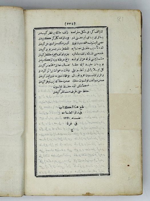 15, 534 p. 23x14,5 cm. Full-leather contemporary binding with miklep (traditional envelope flap), boards stamped with an embossed şemse (mystical sun) medallion. Rebacked. Contemporary marginalia on the verso of first page. Very good condition, clean copy.