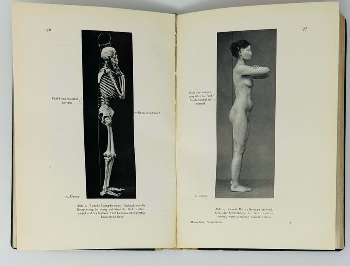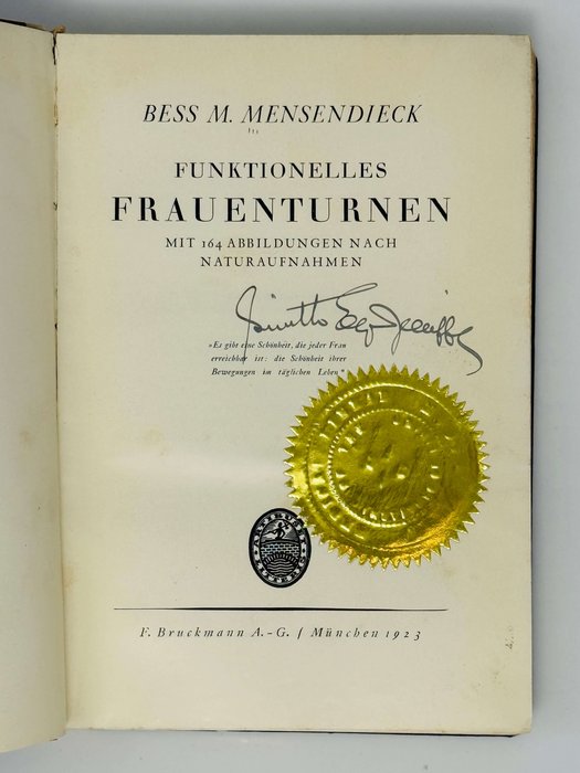 First edition, the second edition came out in 1930. Complete with 164 photo-illustrations. Inscribed by Dr. Mensendieck on the first endpaper. The signature of the reception next to it, also on the title page, next to gilt library label of Medical Library (illegible).