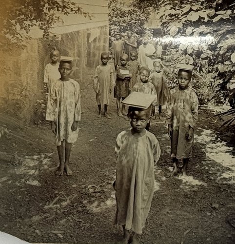 Attractive well-executed watercolour with slightly altered African costumed figures taken from two plates (Tuaricks of Ghraat Plate p.113 & Negresses of the Soudan Plate p.182) of Lyon's "A Narrative of Travels in Northern Africa, in the years 1818, 19, and 20, accompanied by geographical notices of Soudan, and of the course of the Niger. With a chart of the routes, and a variety of coloured plates, illustrative of the costumes of the several natives of Northern Africa:" London 1821. "Lyon was commissioned to accompany Joseph Ritchie on an expedition to reach the Niger by way of North Africa.., [they] were received by the Bashaw of Tripoli, Yusuf Karamanli, who informed them that they would be able to join the caravan of the Bey of Fezzan, Mohammed el Mukni, who was leaving on a slave-trading expedition to the south. Thirty-nine days out of Tripoli the Caravan halted at Murzuk, but within two weeks of their arrival Lyon had gone down with dysentery.., and Ritchie was feverish and delirious.., [and later died at Murzuk]"(Howgego 1800-1850).