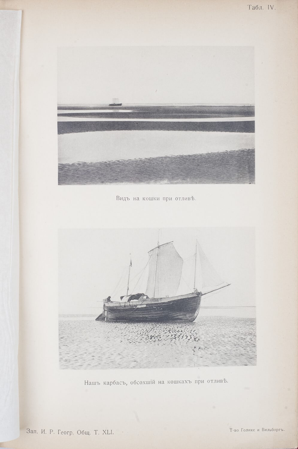 5) Plates IV-X: seven photogravure plates with reproductions of fourteen photographs of Kanin Peninsula, Kuloy and Mgla Rivers, taken by the expedition members;