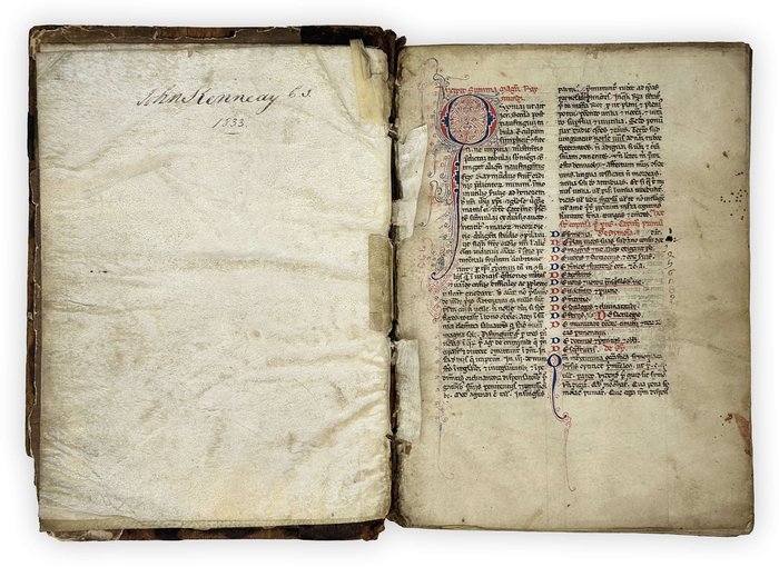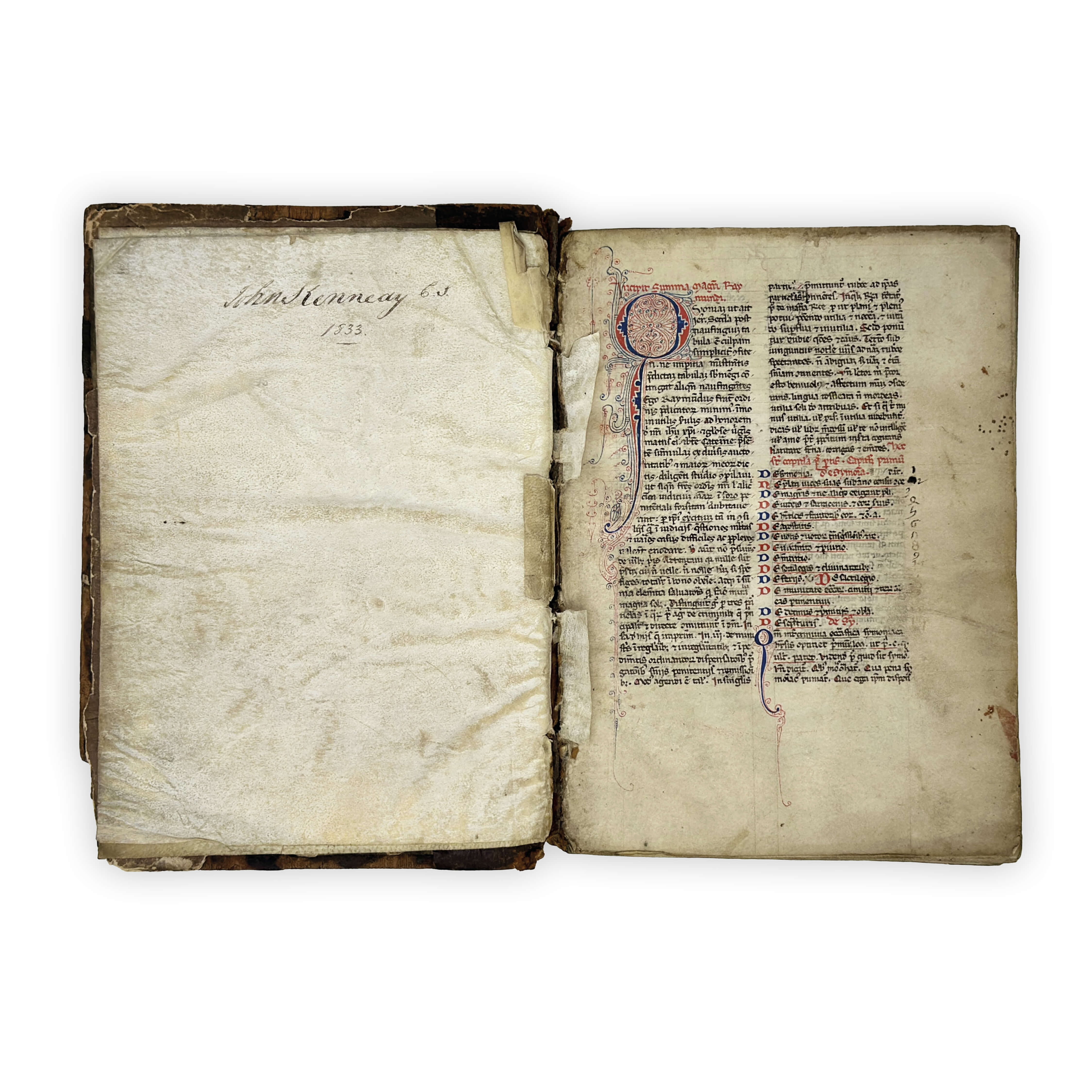 Provenance: A 19th-century inscription on the first flyleaf reads ‘Abbey Cambron’. Cistercian Cambron Abbey in Belgium, dissolved in 1782, in 13th century one of the wealthiest monasteries of Hainault with an important library (many of the surviving manuscripts from this library are inscribed – often repeatedly – ‘de Camberone’, an inscription not found in the present manuscript); ‘John Kennedy C.S. 1833’ on the first flyleaf