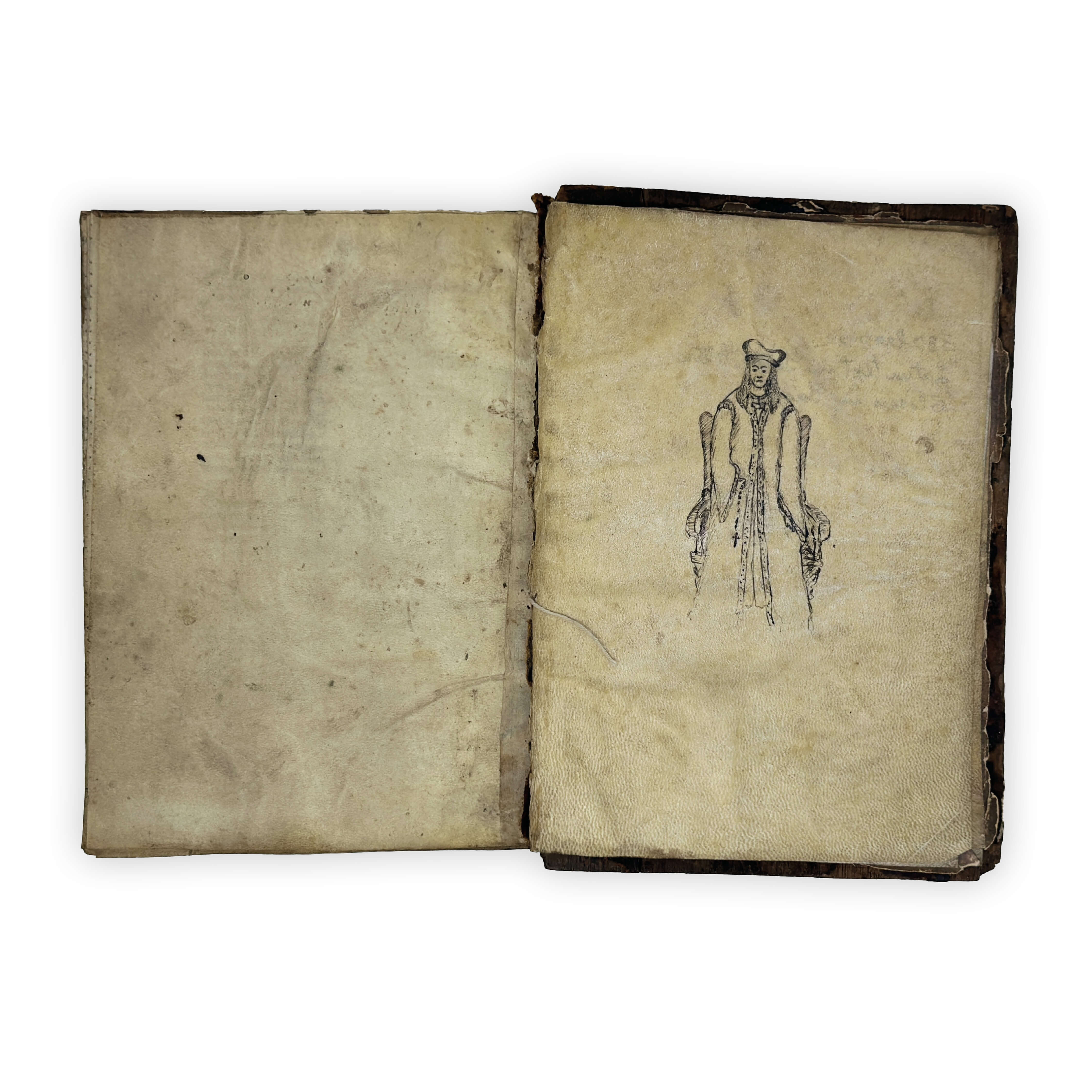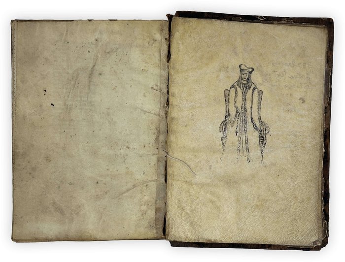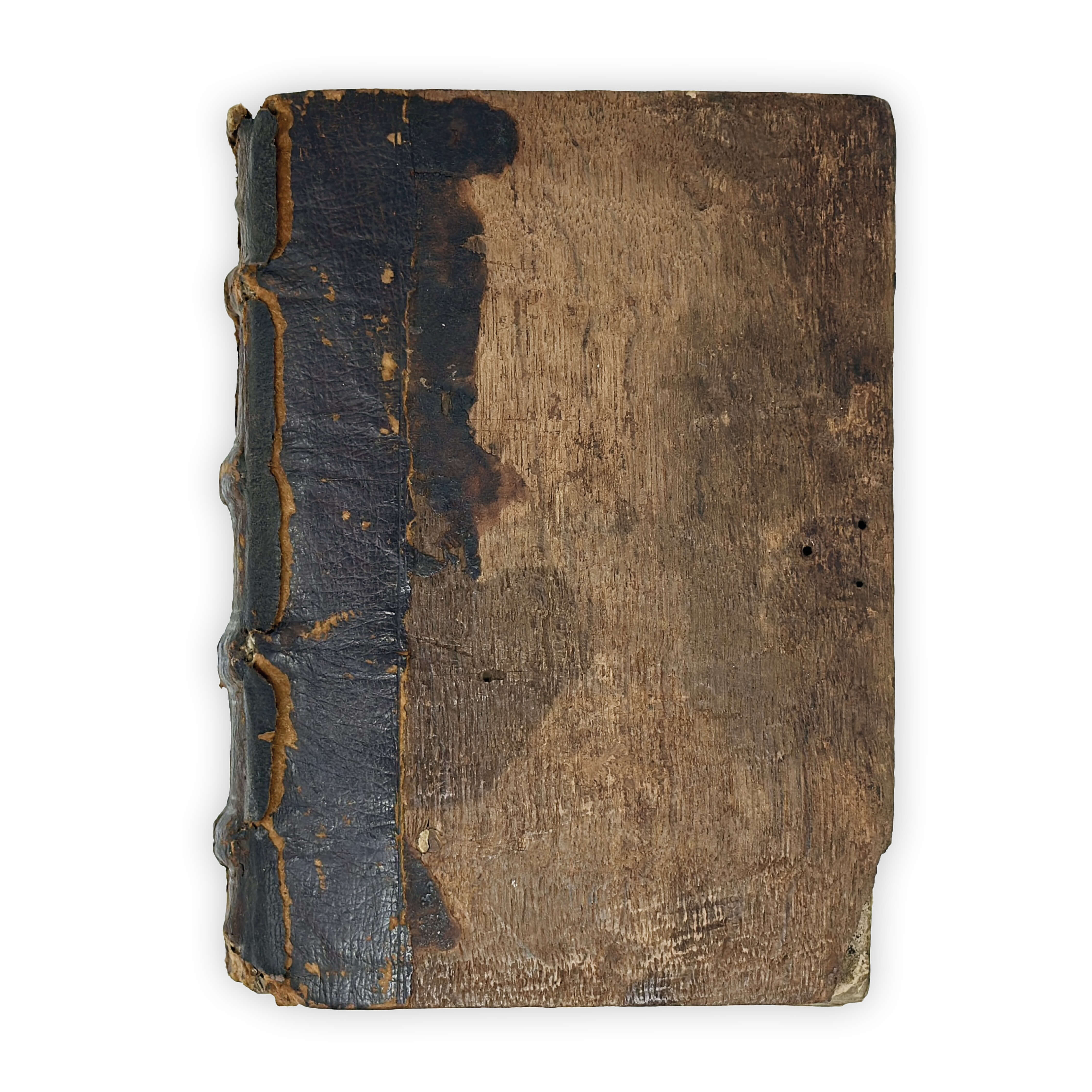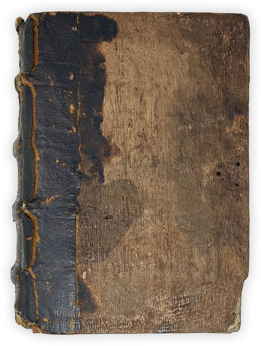 332 unnumbered leaves, complete. 18,5x13 cm. In Latin. Decorated manuscript on vellum. Contemporary wooden boards, the leather on the spine remains, but not on the covers. No clasps. Binding is shaky, but intact.