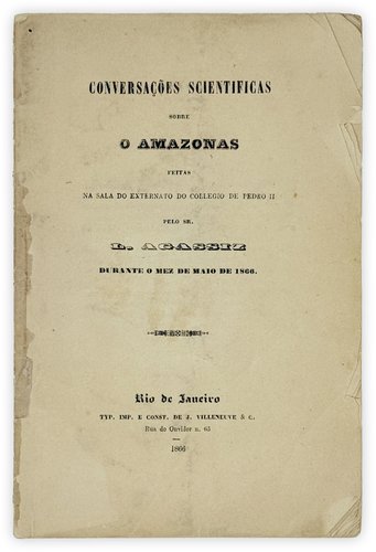 Louis Agassiz. Conversações scientificas sobre o amazonas : feitas na sala do externato do Collegio de Pedro II durante o mez de maio de 1866 [i.e.Scientific discussions about the Amazon: held in the lecture hall of the Pedro II College during the month of May 1866]. Rio de Janeiro: Typ. Imp. e Const. de J. Villeneuve, 1866.