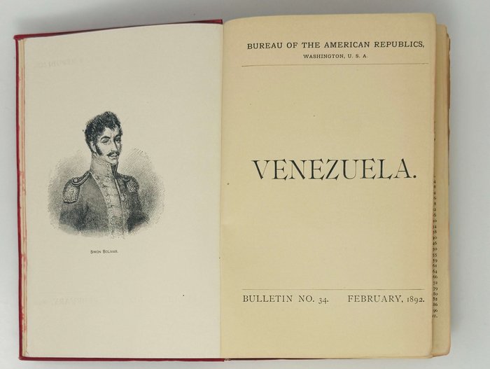 - Venezuela. Bureau of the American Republics, Bulletin No. 34, February 1892. Washington, 1892. [8], 199 p., 25 l.of ill., 1 folding map.