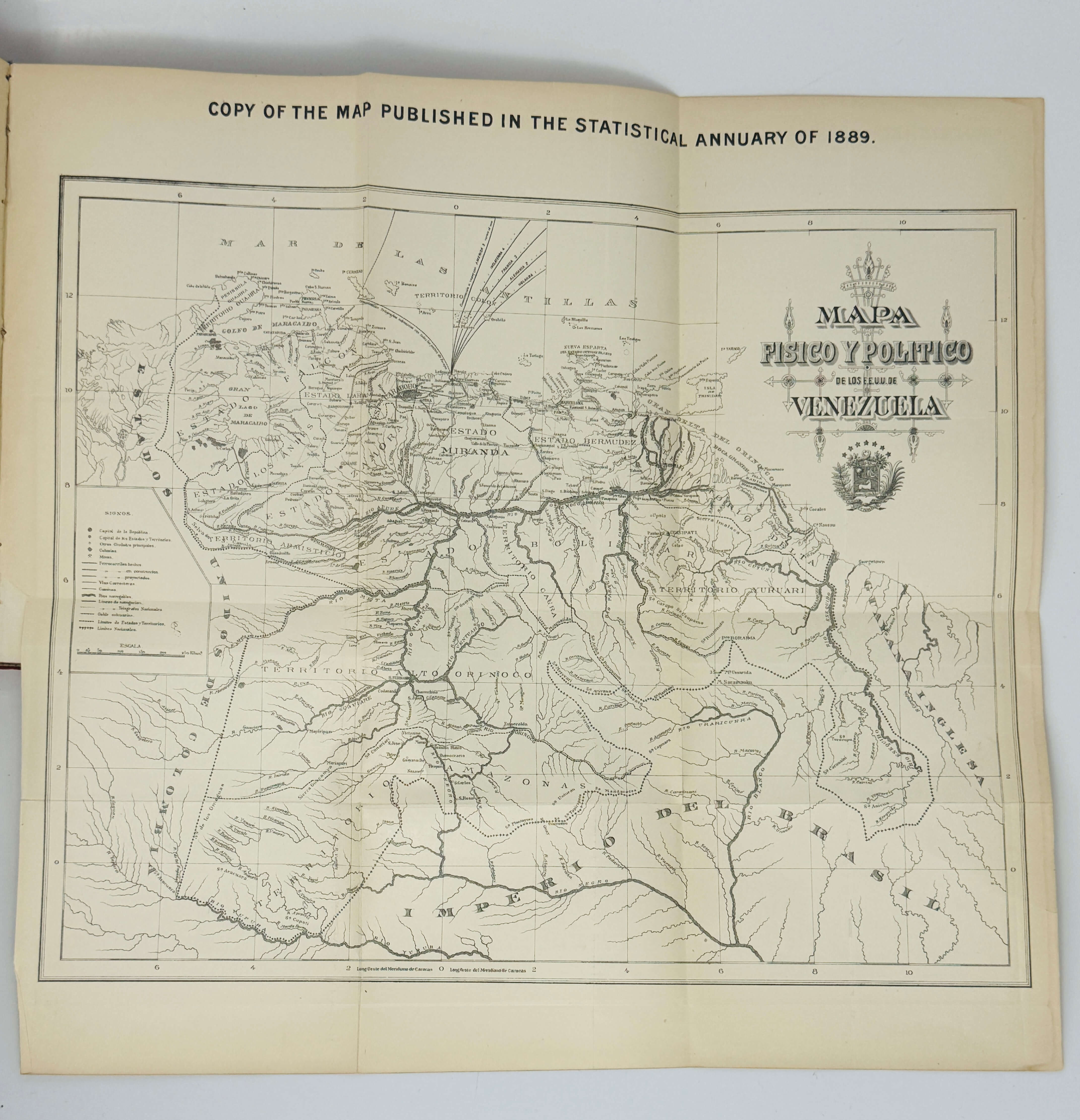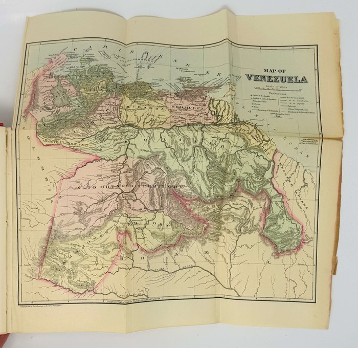 In contemporary custom-made red cloth binding, titled ‘Venezuela’ in gilt on the front cover; the date ‘1893’ and the owner’s name ‘R. M. Bartleman’ also gilt on the front cover. Binding slightly rubbed; a pale stain to the front cover. The printed map with small tears at the edges. Blank unused pages bound throughout; otherwise in very good condition.
