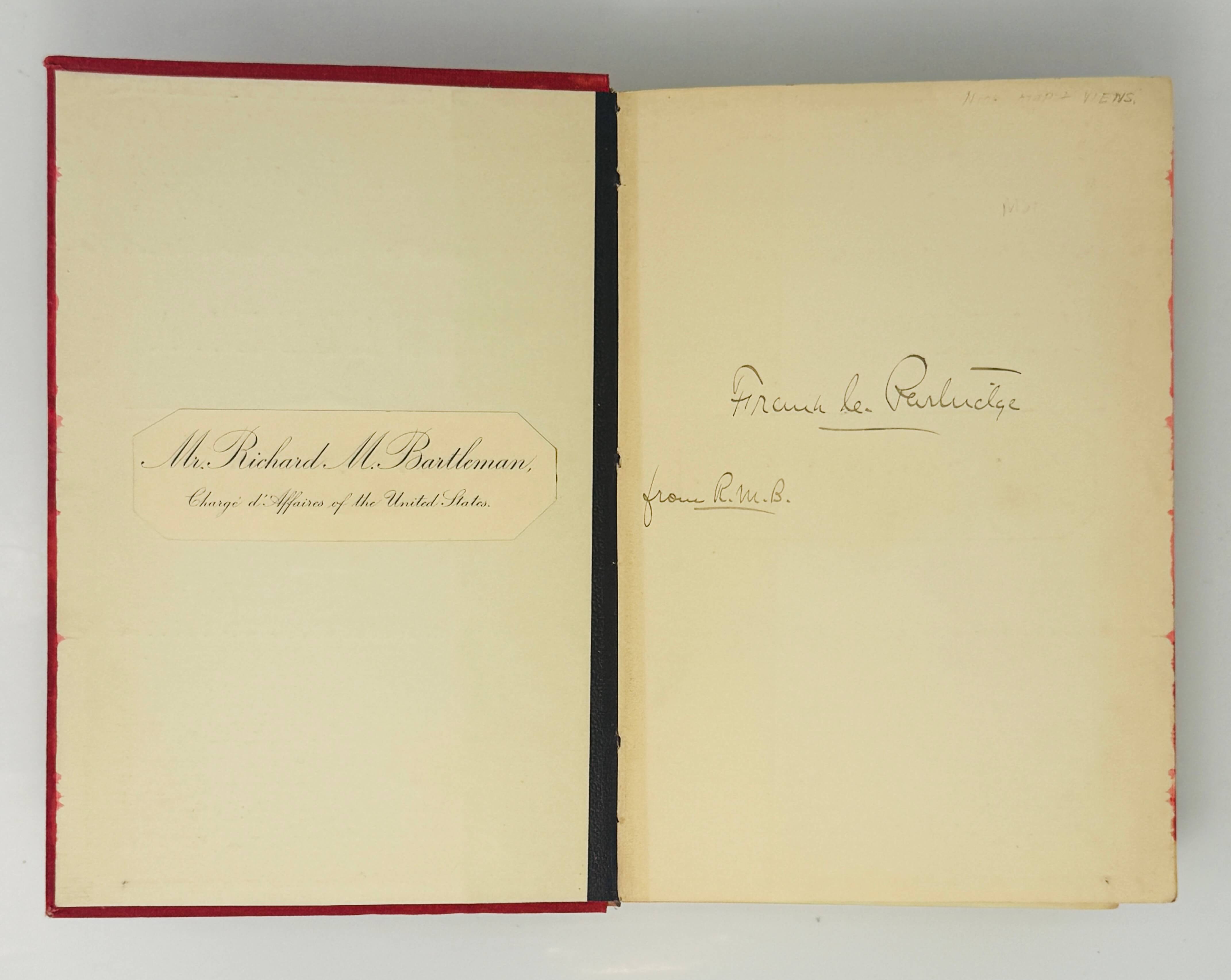Richard M. Bartleman’s printed bookplate on the first endpaper. Frank C. Partridge’s name inscribed next to it, indicating that it was received from ‘R.M.B.’